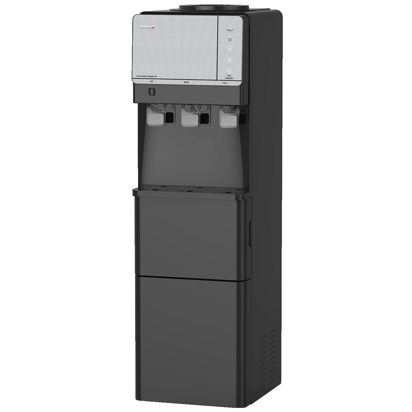 Radi sa standardnim bocama od 19 litara i koristi kompresorski sistem hlađenja koji osigurava stabilne performanse i pouzdanu temperaturu vode. Upravlja se putem dodirnih kontrola, a indikator svjetla jasno prikazuje aktivne funkcije. Topla voda ima ugrađenu sigurnosnu zaštitu za djecu.