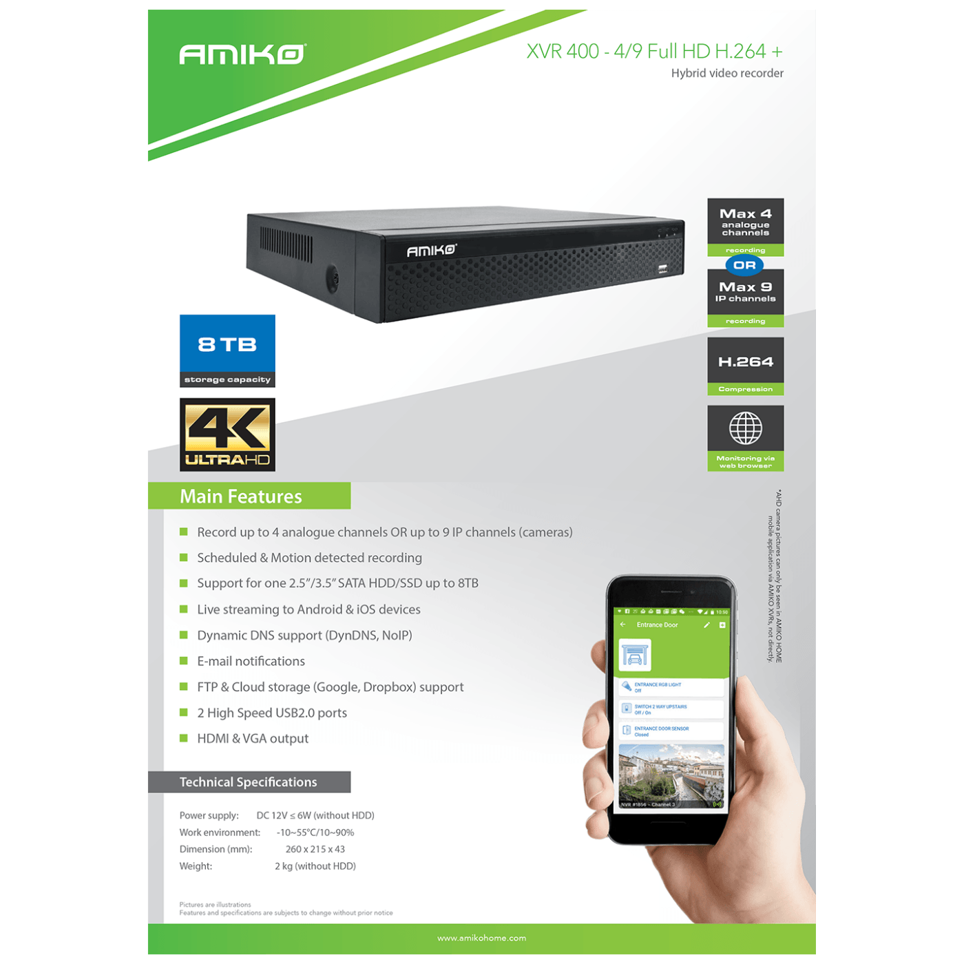Amiko Home 4 / 9 kanalni, 5 in 1, snimač za video nadzor, H.264+ - XVR 400 - 4/9 FULL HD H.264+