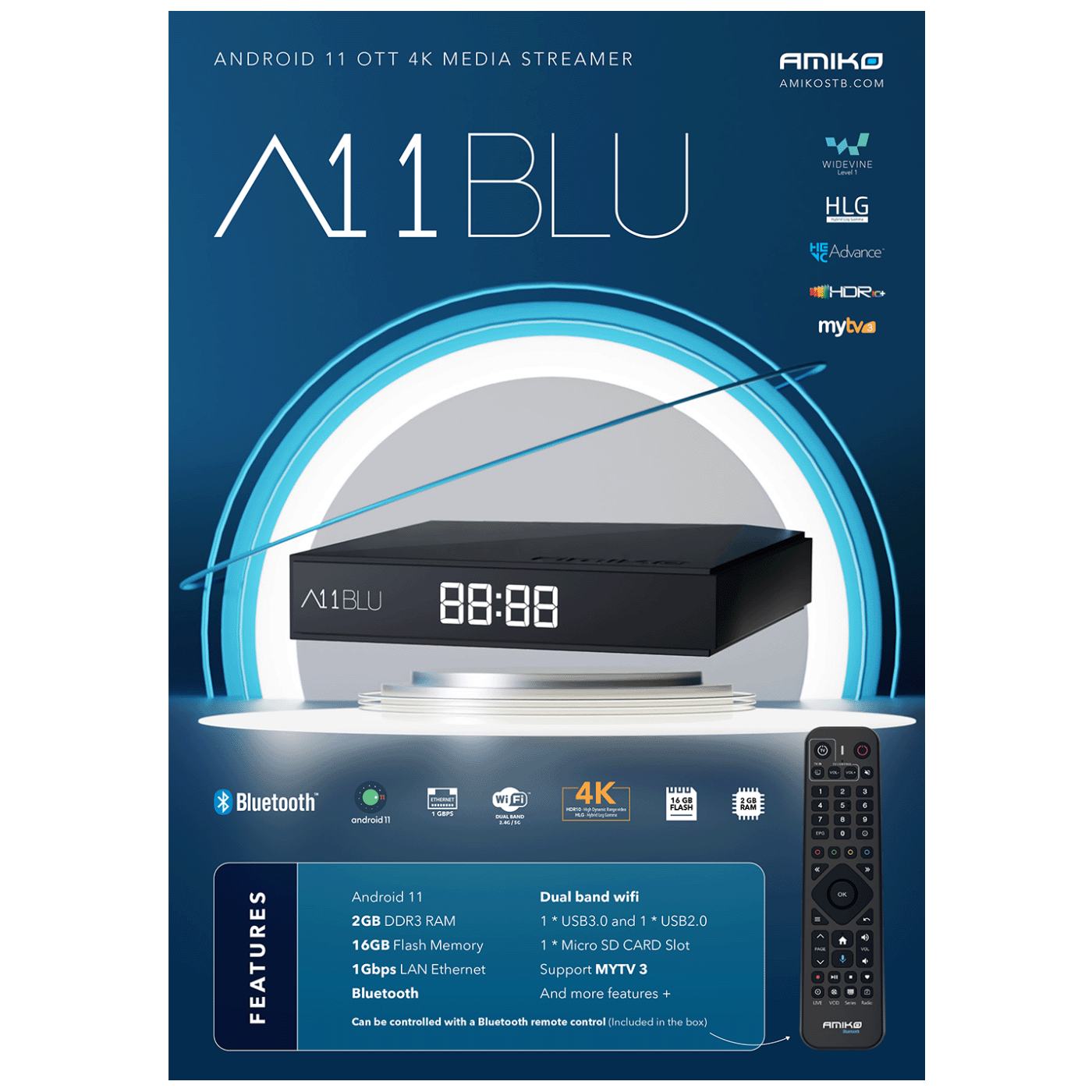 Amiko Prijemnik IPTV, Android OS, 2/16GB, 4K, WiFi, Bluetooth - A11 BLU