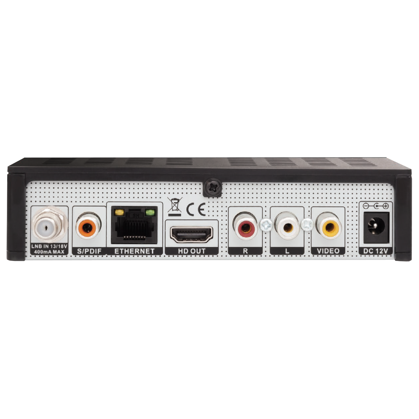 Full HD satelitski S / S2 prijemnik, H.265, univerzalni čitač kartica, CPU 800MHz, 256MB DDR3 RAM, 16MB flash, 2 x USB 2.0, LAN RJ-45, PVR & TimeShift, Ethernet, YouTube, Media Player (MKV, AVI, MPEG, TS, MP3, JPEG), LED Display, napajanje 12V DC / 24W