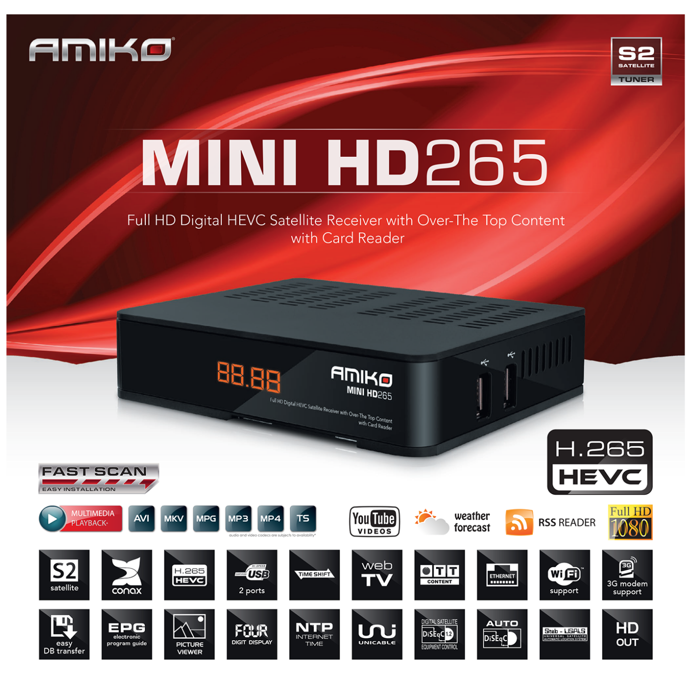 Amiko Prijemnik satelitski, DVB-S2, Full HD, H.265 - MINI HD265
