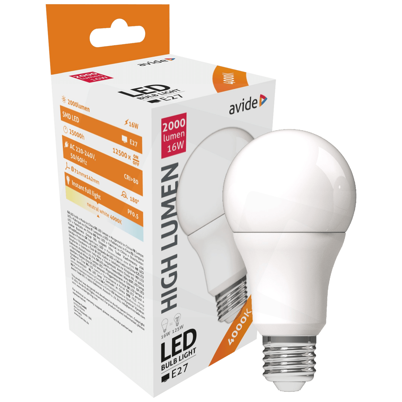 Avide Sijalica, LED 16W, E27, 4000K, 230V AC, bijela svjetlost - Globe A70 16W E27