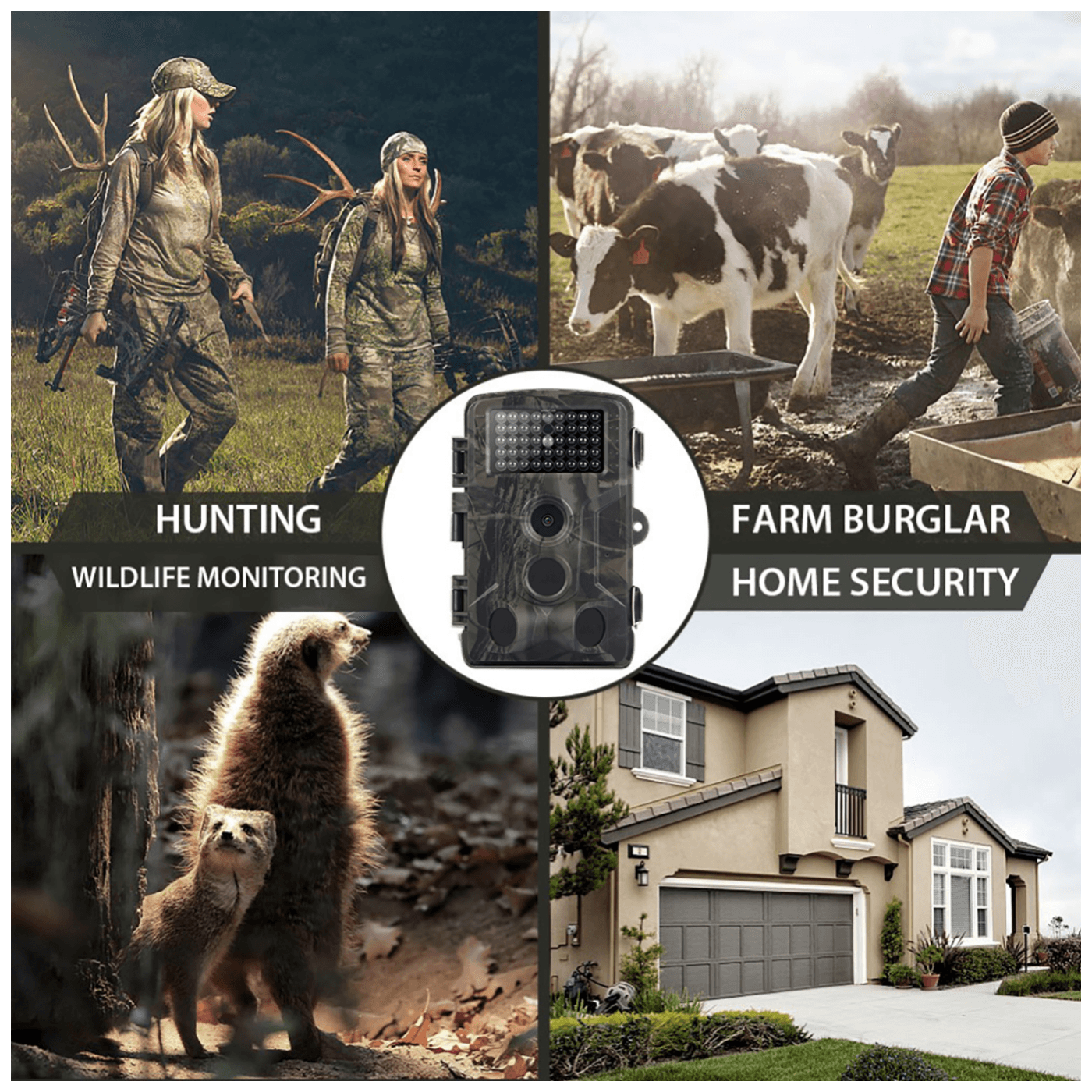 Ova digitalna kamera ( lovačka kamera ) idealan uređaj za nadzor stambenog prostora, nadzor nad skladištima. Svojim specifičnim dizajnom i svojim maskirnim izgledom veliku primjenu ima u praćenju i nadgledanju divljih životinja te je prikladna za postavljanje ili pričvršćivanje u prirodi.