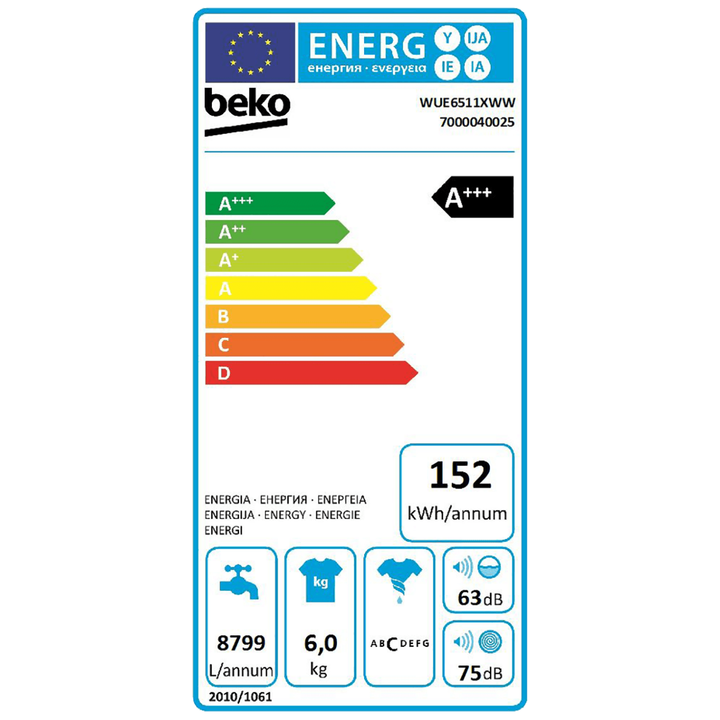 Beko Mašina za veš, 1000 obrtaja, 6kg veša, A+++ - WUE6511XWW