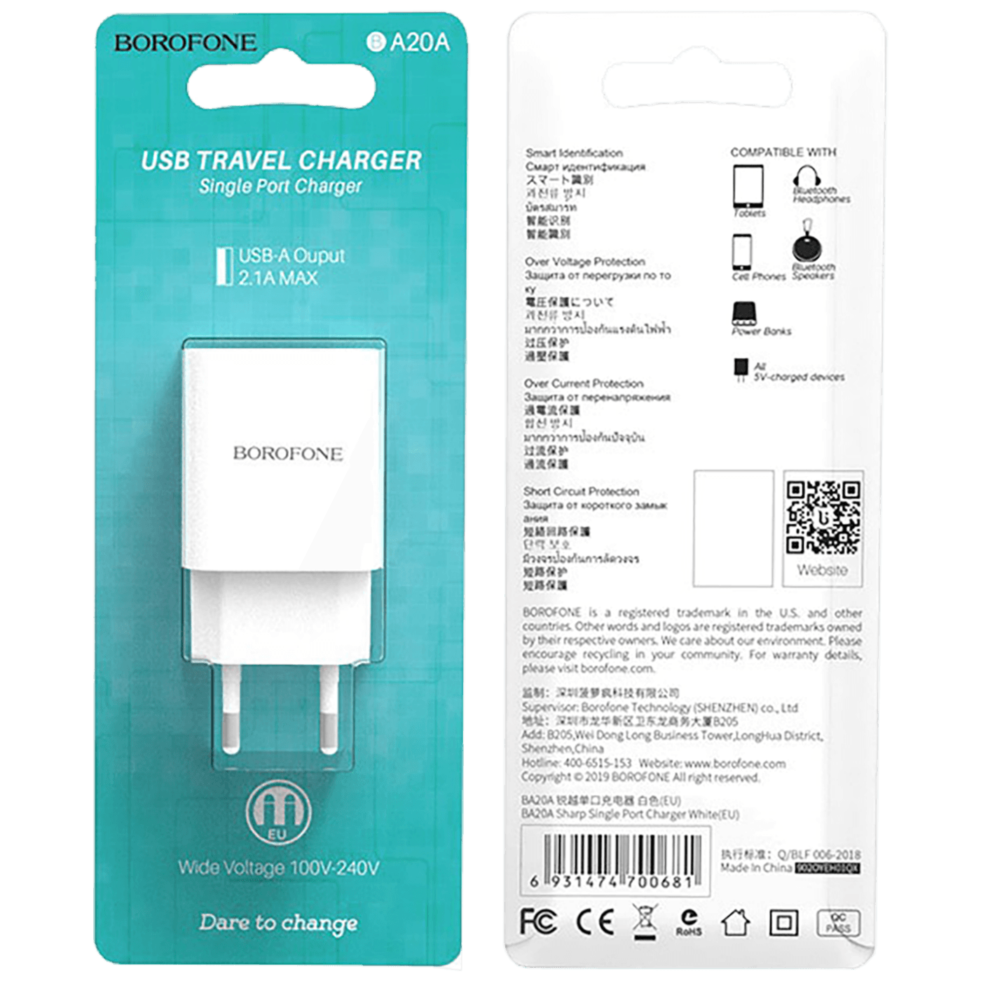 Borofone Punjač kućni, za smartphone, tablete..., 2.1 A - BA20A Sharp