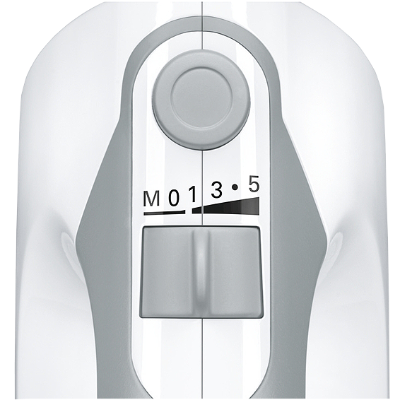 Ručni mikser sa posudom, snaga motora 450 W, tih i snažan, 5 postavki brzine + turbo, odlično rukovanje s velikim, lako dostupnim gumbima i ergonomskim oblikom, odvojena tipka za izbacivanje metlica, stalak za miješanje, kapacitet posude 500 g brašna + dodaci (tijesto za kruh ili pizzu), prostor za namotavanje kabla, 2 turbo metlice za miješanje, 2 stabilne metlice za gnječenje