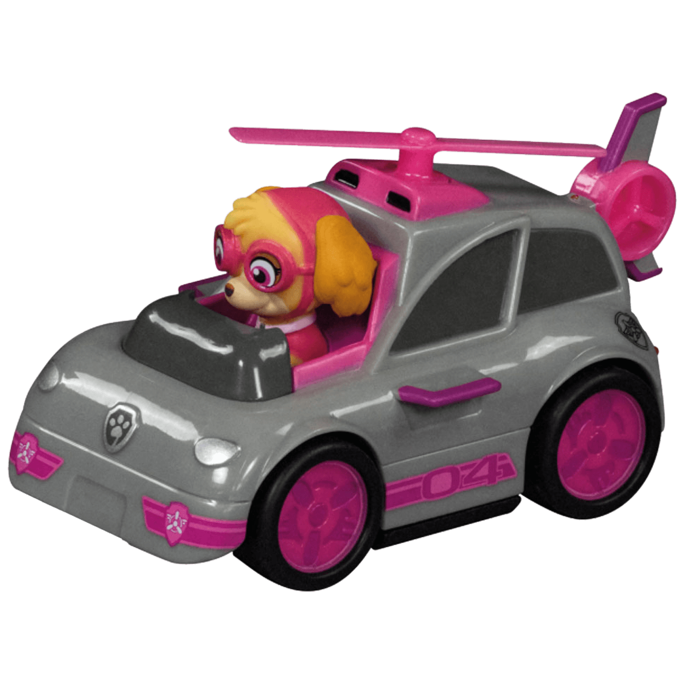 Chase juri trkačkom stazom u svom policijskom automobilu, dok Skye u svom helikopteru leti oko staze Carrera.