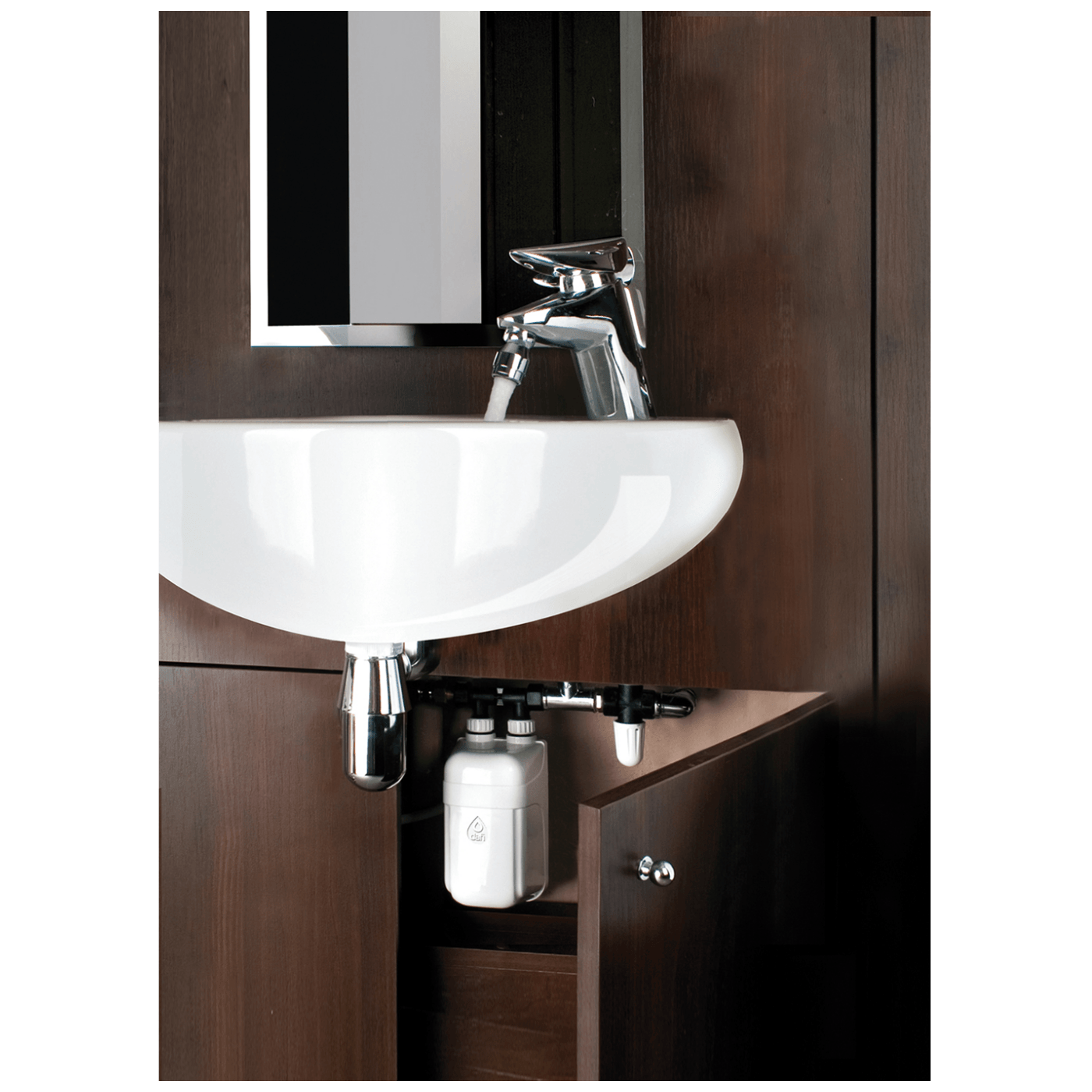 Može se montirati bilo gdje: iznad ili ispod umivaonika, pored tuš kabina, u kupaonskim ili kuhinjskim elementima.