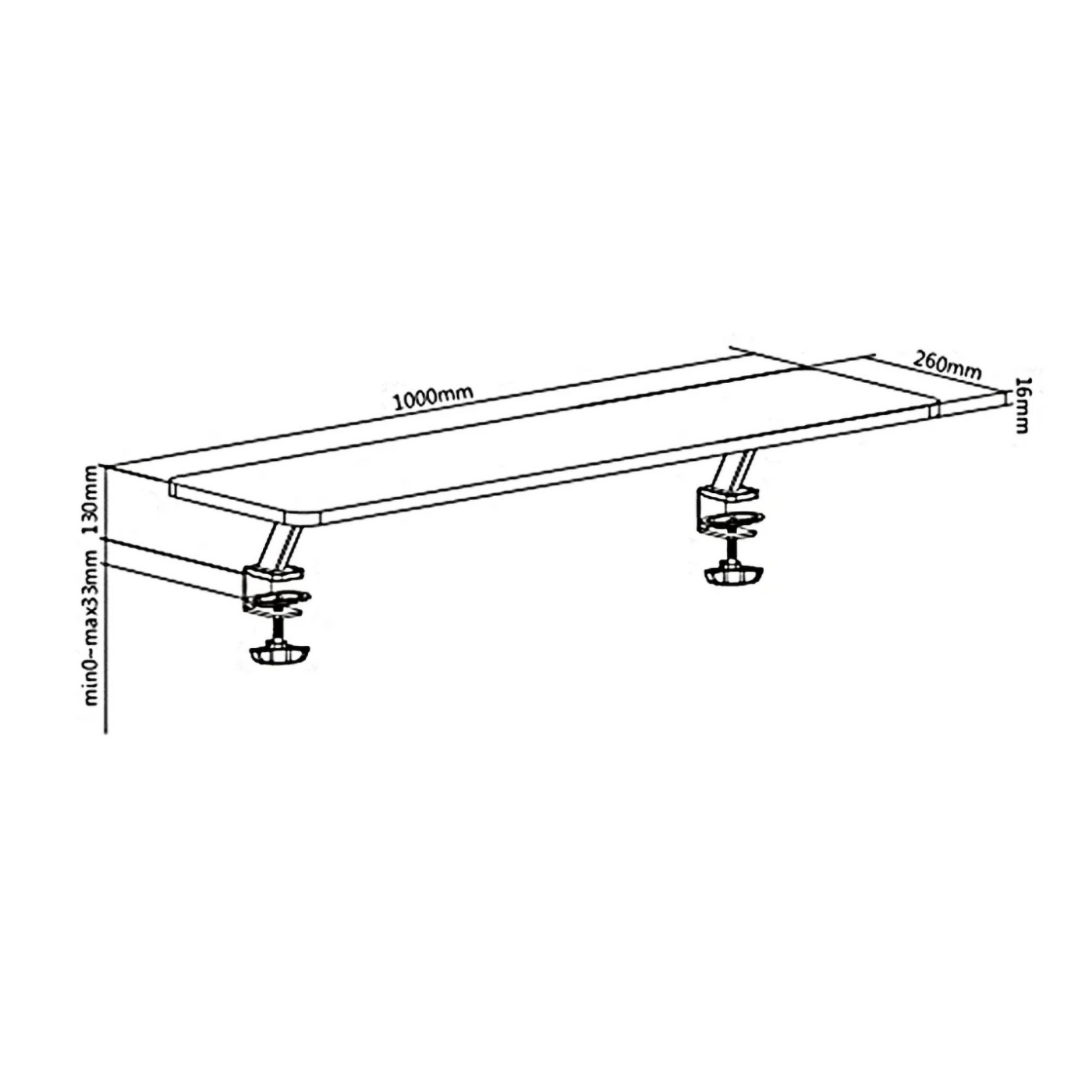 Površina police je 100x26 cm, što je čini idealnom za monitor maksimalne dijagonale oko 32" i težine do 20 kg. Polica je prikladna i za laptop.