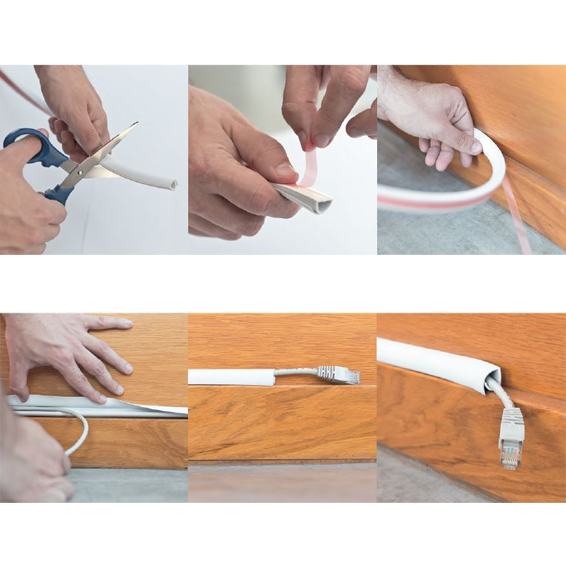 Samoljepljiva gumena fleksibilana kanalica 15 x 12, dužina 5m, jednostavna za uporabu, ljepilo koje prijanja na glatke površine, za skraćivanje i oblikovanje mogu se koristiti obične škare, postojano na temperaturi od -15 do 70 stupnjeva, primjenjuje se za ugradnju kabela, UTP, koaksijalnih itd....... boja bijela