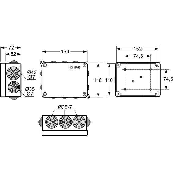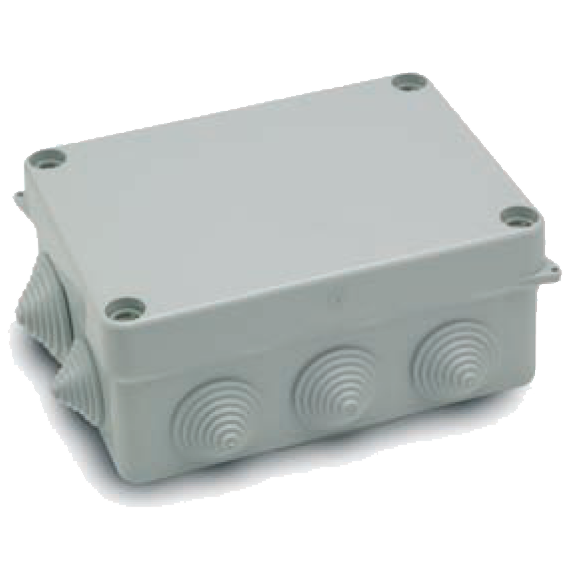 Razvodna kutija nadžbuk, dimenzija 153x110x63, 8 ulaza Ø 25mm, vodonepropusna, IP55.