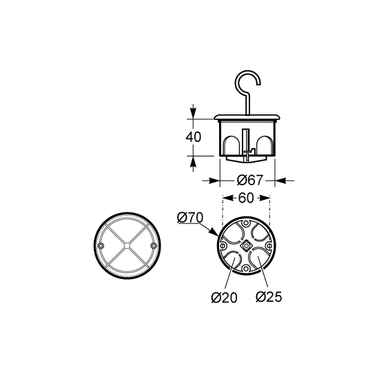 Razvodna kutija rigips sa kukom, dimenzija 67x39x67, IP30.