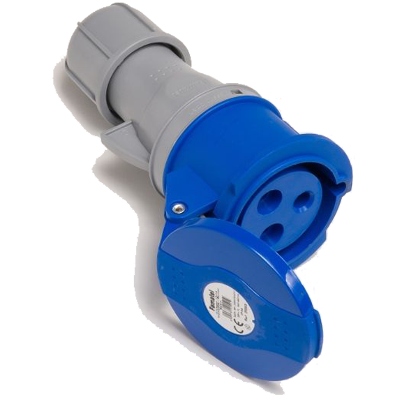 Utičnica spojka 32A, 220÷240VAC, Frekvencija 50-60Hz, 3 Polna (2P+E), PIN lokacija 6H, IP44, plava boja.