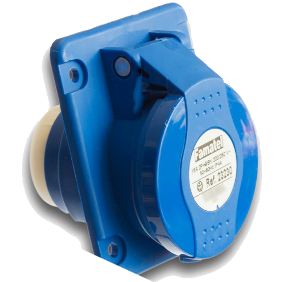 Utičnica utičnica kutna 10°, panelna, 16A, 220÷240VAC, Frekvencija 50-60Hz, 3 Polna (2P+E), PIN lokacija 6H, IP44, plava boja.