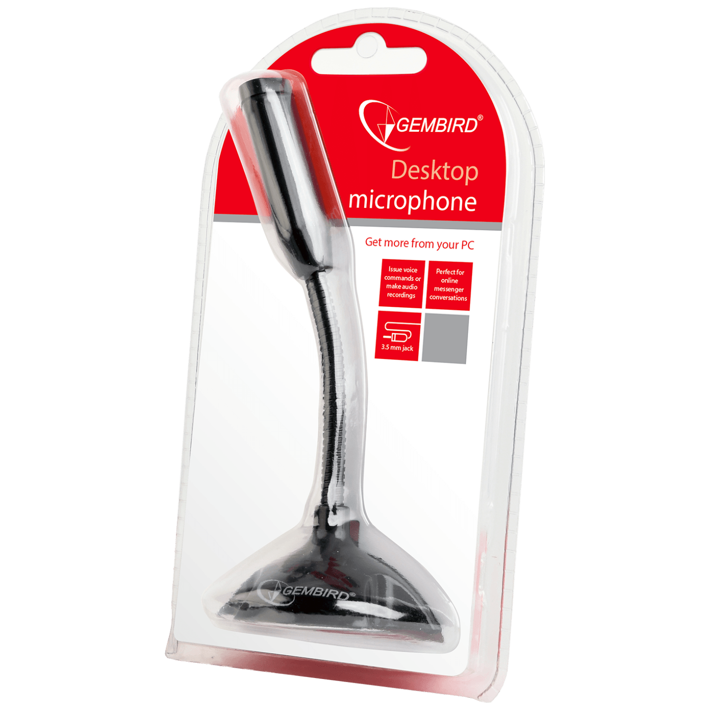 Višenamjenski stolni mikrofon, snimanje visokih performansi, fleksibilni vrat, 3.5 mm priključak, frekvencija 100 Hz - 16 kHz, osjetljivost - 62 +/- 3 db, impedanca < 2.2 kO, radni napon 2...5 V, dužina kabela 1.1 met.