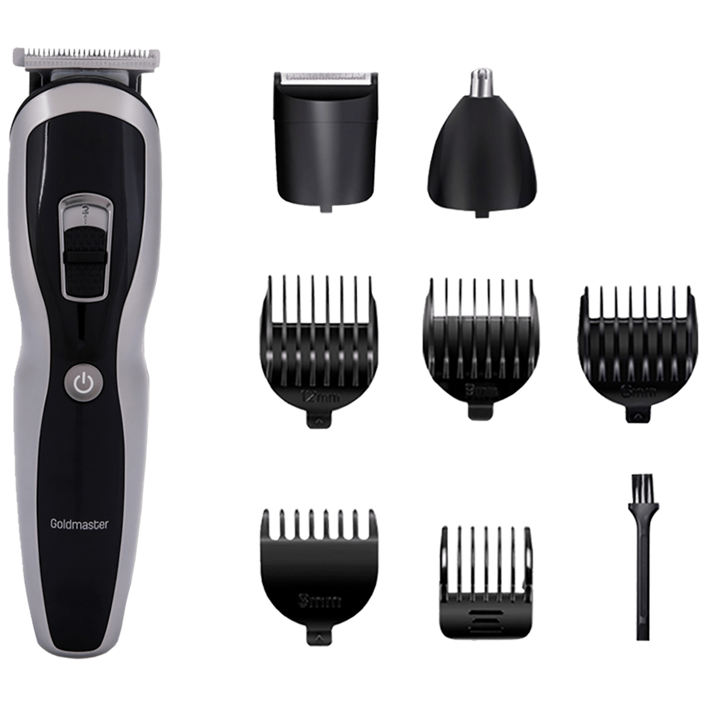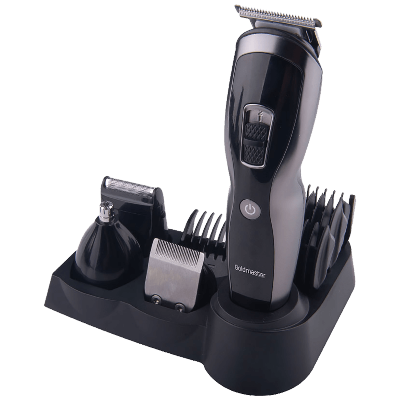 Aparat za brijanje i šišanje, Goldmaster GM-8104, set za njegu muškaraca, može se udobno koristiti kako za šišanje kose tako i za brijanje brade, 4 različite glave za rezanje i 5 češljeva pomažu vam da oblikujete kosu ili bradu kako želite, LED zaslon, Li-Ion baterija, brzo punjenje 2 h, vrijeme rada sa potpuno napunjenom baterijom 60 min., oštrice od nehrđajućeg čelika za dug radni vijek, oblik glave prilagođen koži za brijanje bez iritacije