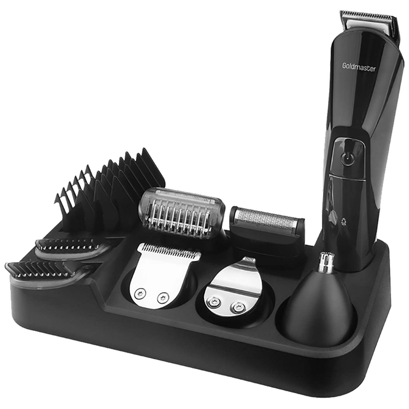 Aparat za brijanje i šišanje, Goldmaster GM-8148, set za njegu muškaraca, može se udobno koristiti kako za šišanje kose tako i za brijanje brade, trimer za nos i uši, kabelska i bežična upotreba, ugrađena Li-Ion baterija, vrijeme punjenja 90 minuta, vrijeme rada sa potpuno napunjenom baterijom 120 minuta, punjenje preko microUSB-a, indikator punjenja, zaštita od preopterećenja, 3 češlja za njegu tijela, 4 češlja za bradu