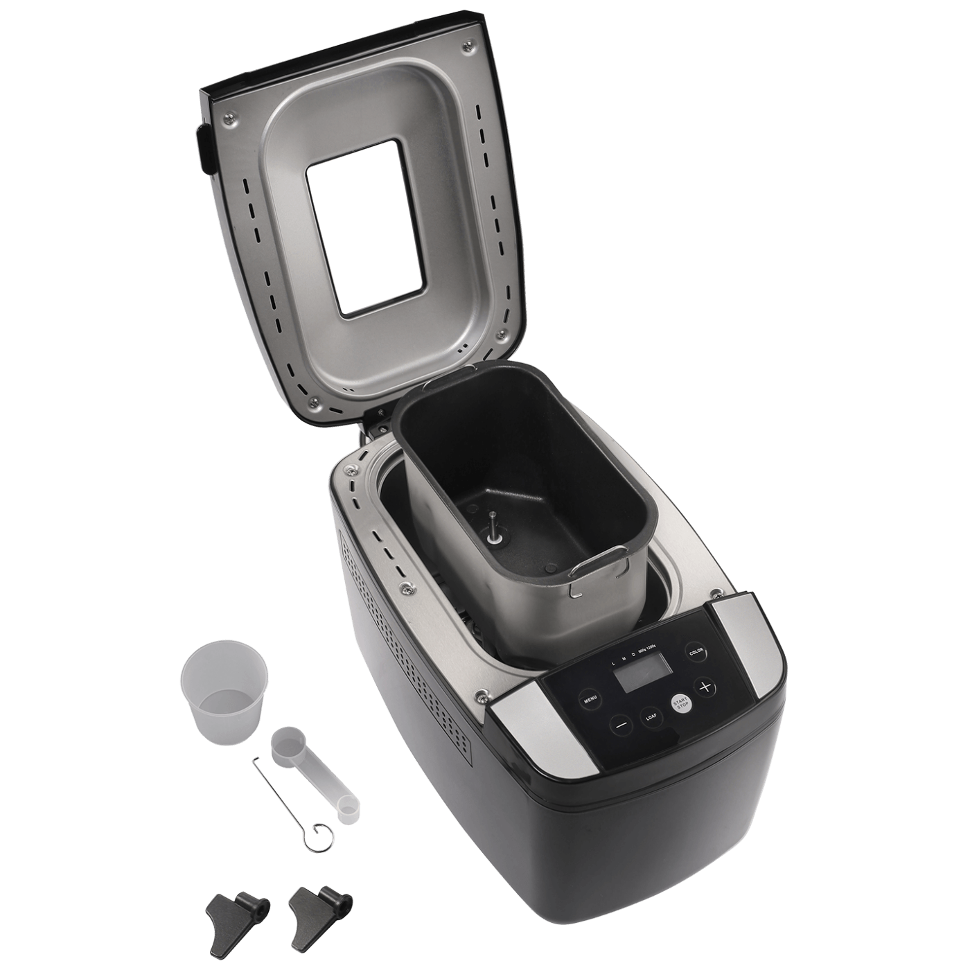 Pekač za hljeb, priključna snaga 800 W max., odstranjiva posuda s neprijanjajućim slojem, 1 posuda za pečenje hljeba, 2 lopatice, 2 veličina hljeba 900 - 1.200 g, kontrolni prozorčić za nadzor procesa pečenja, 12 prethodno podešenih programa 12, program za dizanje tijesta, zvučni signal, funkcija održavanja toplote, nastavak pečenja i nakon prekida el. energije, tipka za uključivanje, elektrnonska kontrola zapečenosti hljeba, LCD display, program za miješanje i dizanje tijesta, brzi program za brze rezultate, program za pravljenje džema za širu upotrebljivost aparata, program za pečenje hljeba bez glutena, mjerna posudica, dozirna kašika, gumirana podloga protiv klizanja, knjižica s receptima za nove ideje, automatsko isključivanje za dodatnu sigurnost, kućište od plastike i metala, dužina priključnog kabla 1.2 met