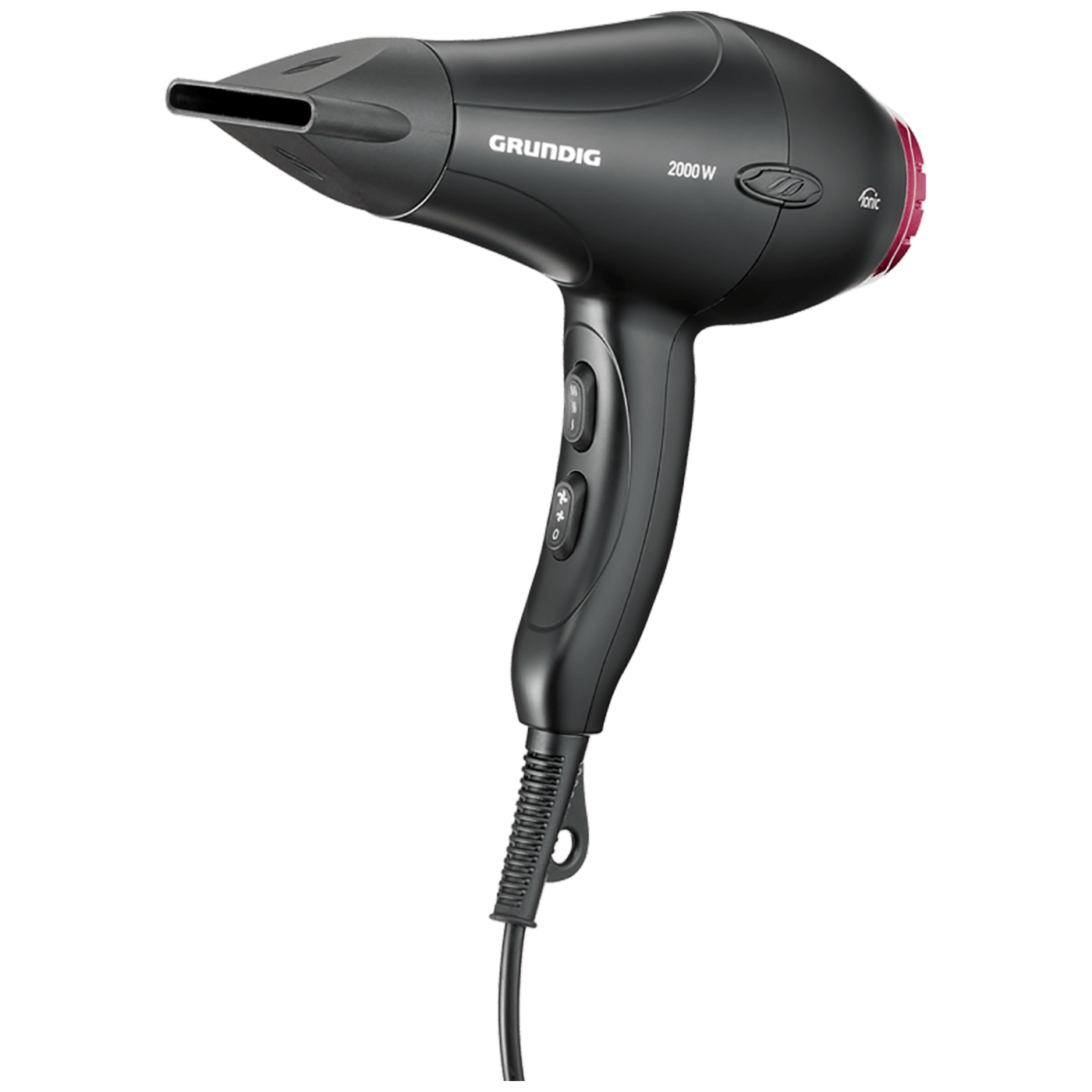 Izlazna snaga 2000 W, Ionska funkcija za glatku i sjajnu kosu bez statičkog elektriciteta, 3 postavke topline i 2 postavke brzine, hladno puhanje, mlaznica za oblikovanje, odvojivi difuzor za volumen, odvojiva rešetka za ulaz zraka, kabel duljine 1,8 m s prstenom za vješanje