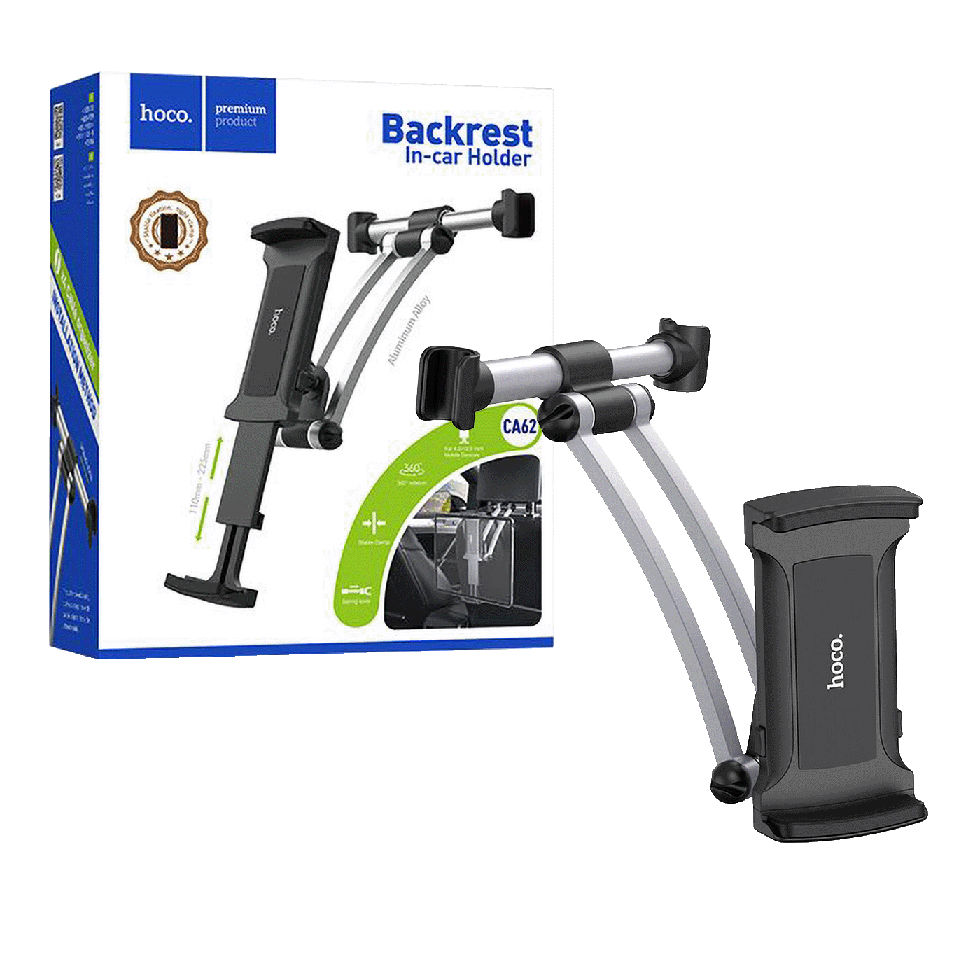 Hoco CA62 Handsome auto držač za mobilne uređaje. Pričvršćuje se direktno na rukohvate naslona za glavu autosjedalice. Olakšava gledanje filmova tokom putovanja.