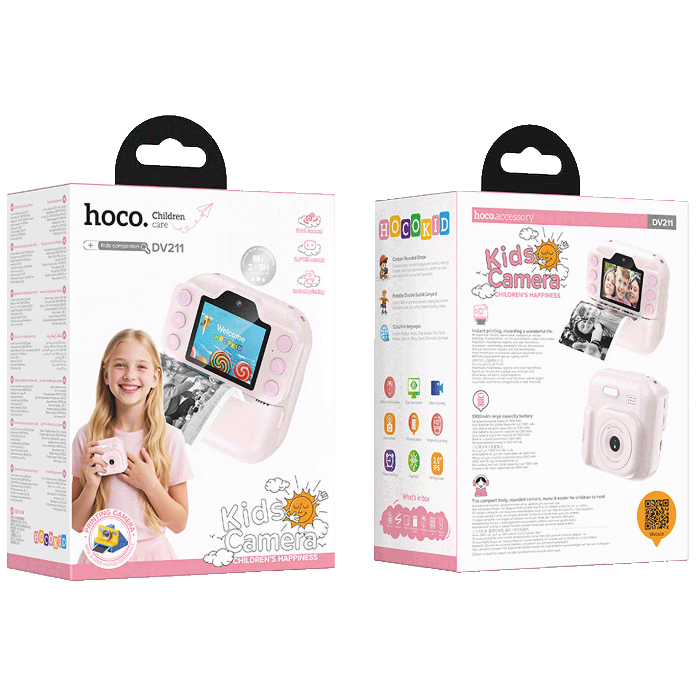 hoco. Dječija kamera sa printerom, 2" IPS LCD, 1080p - DV211 Pink