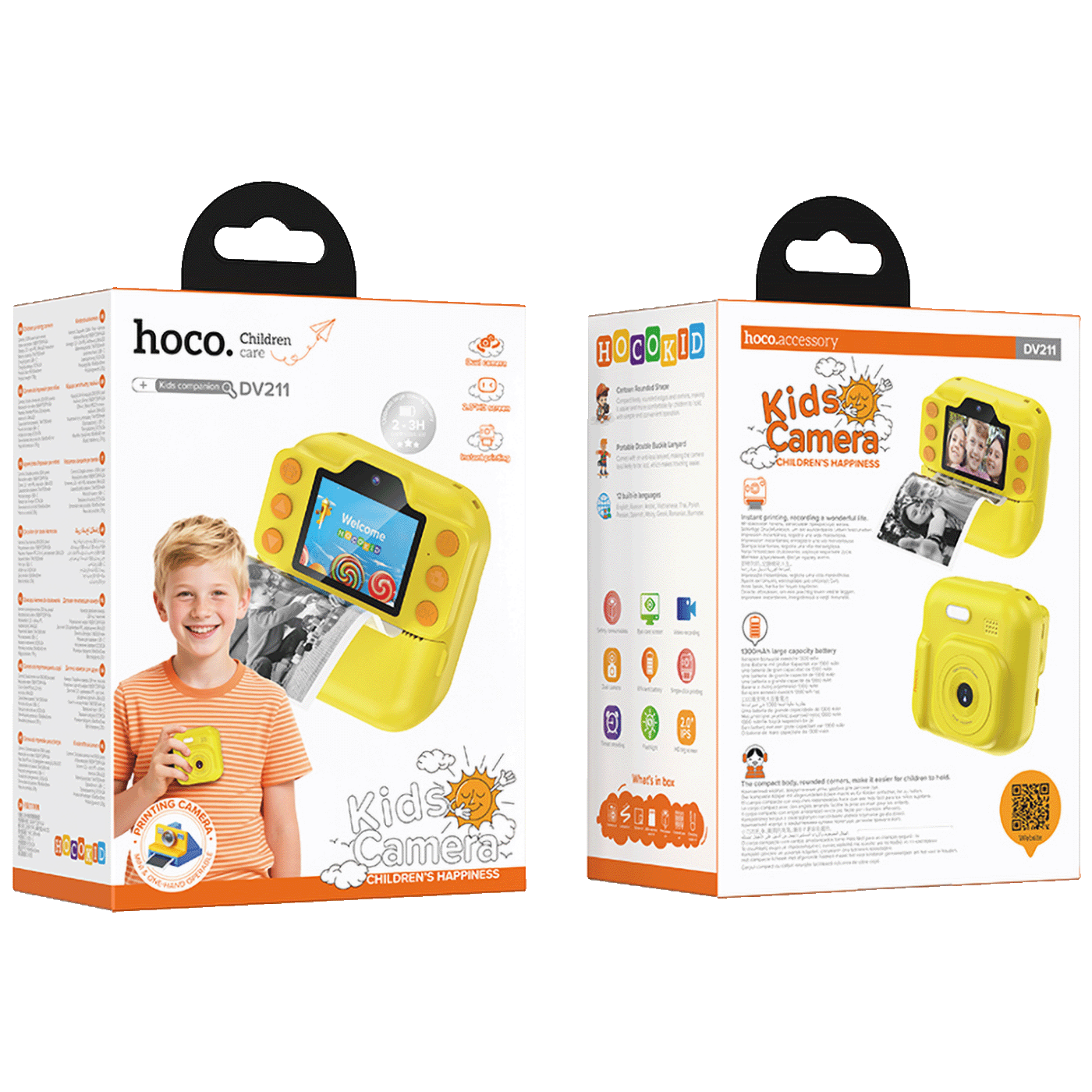hoco. Dječija kamera sa printerom, 2" IPS LCD, 1080p - DV211 Yellow