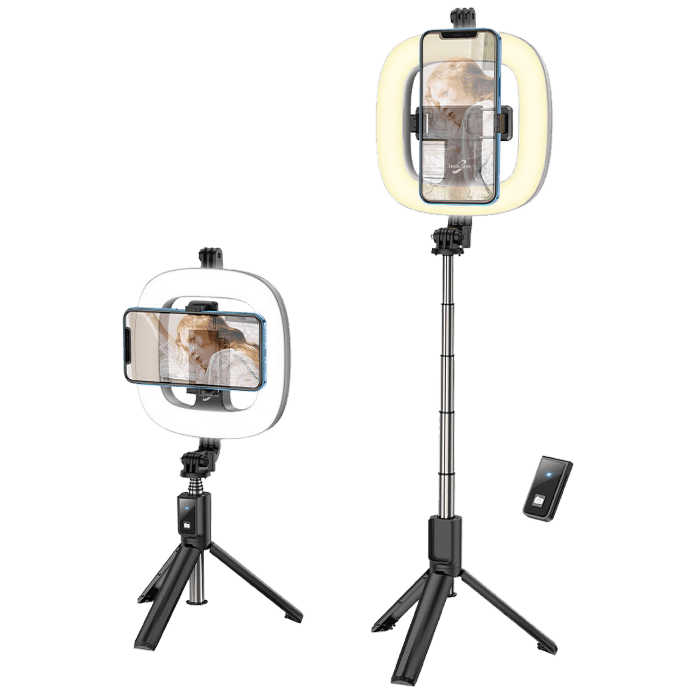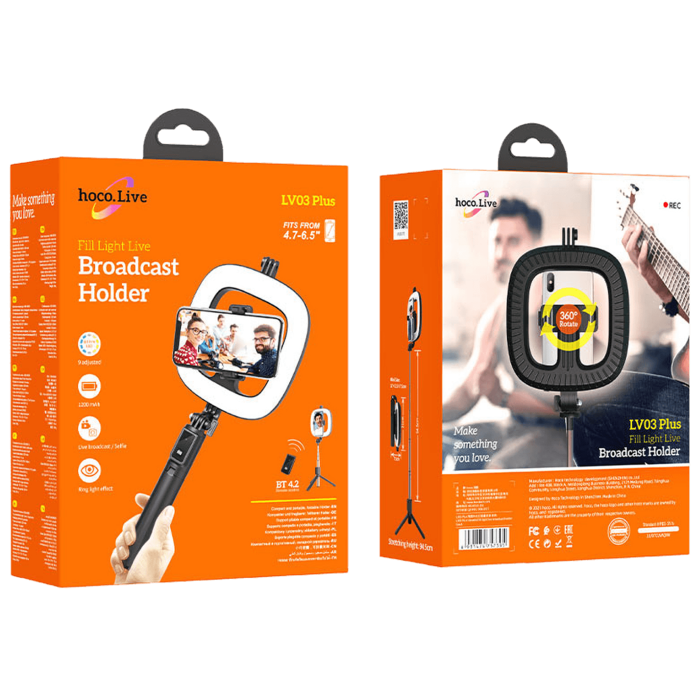 LV03 Plus Showfull, stalak za prijenos uživo s svjetlom za mobilne telefone od 4.7 - 6.5 inča, Bluetooth daljinski upravljač 1. Materijal ABS + aluminijska legura. Težina: 304g.
