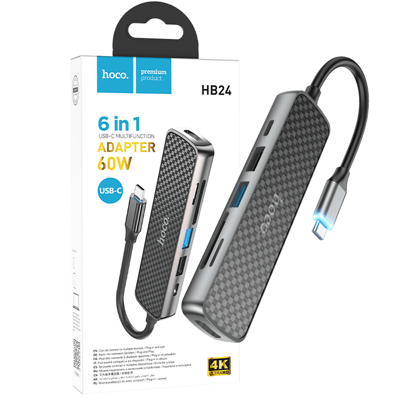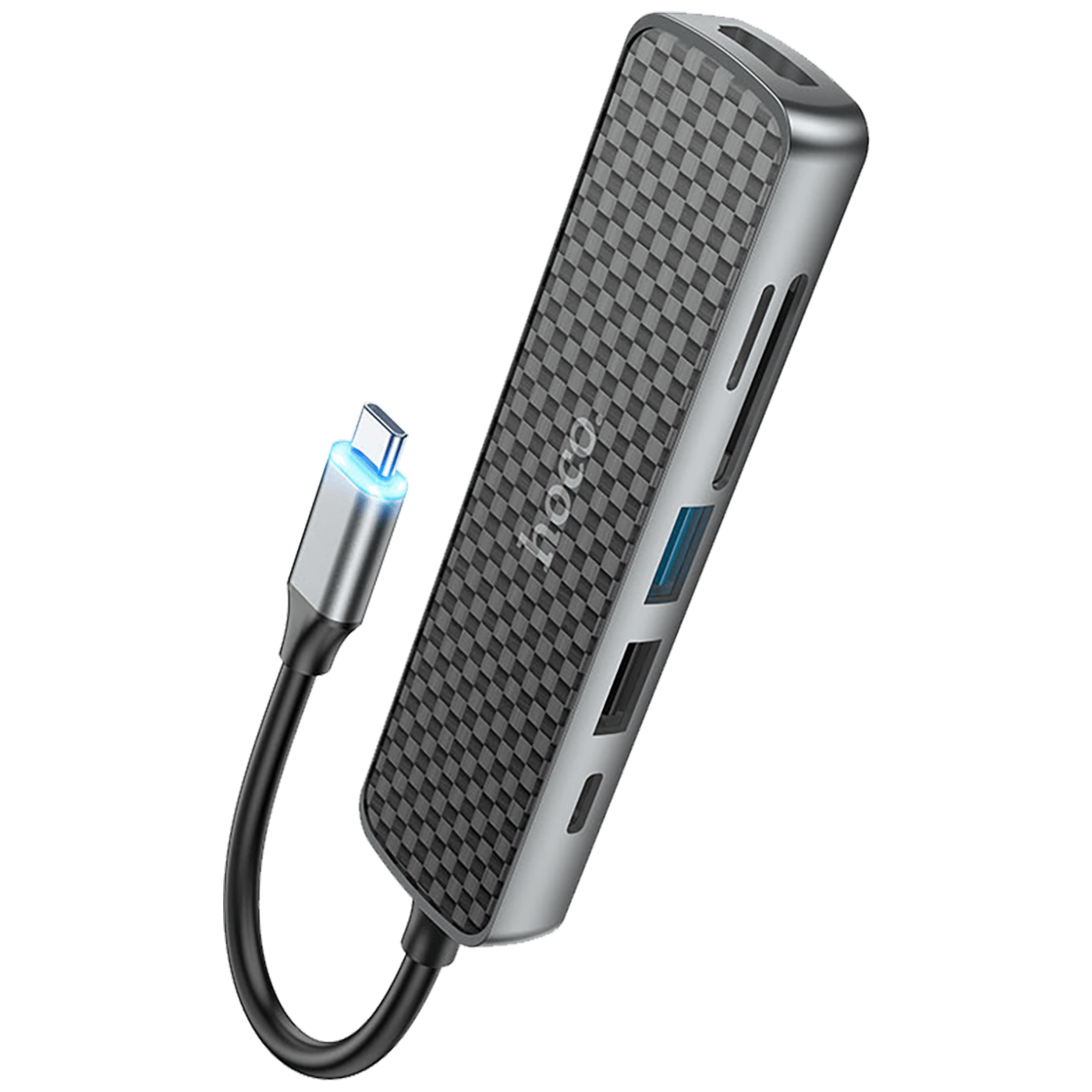 hoco. Konverter USB HUB type C to HDMI/USB3.0/USB2.0/SD/ TF/PD - HB24 Easy display