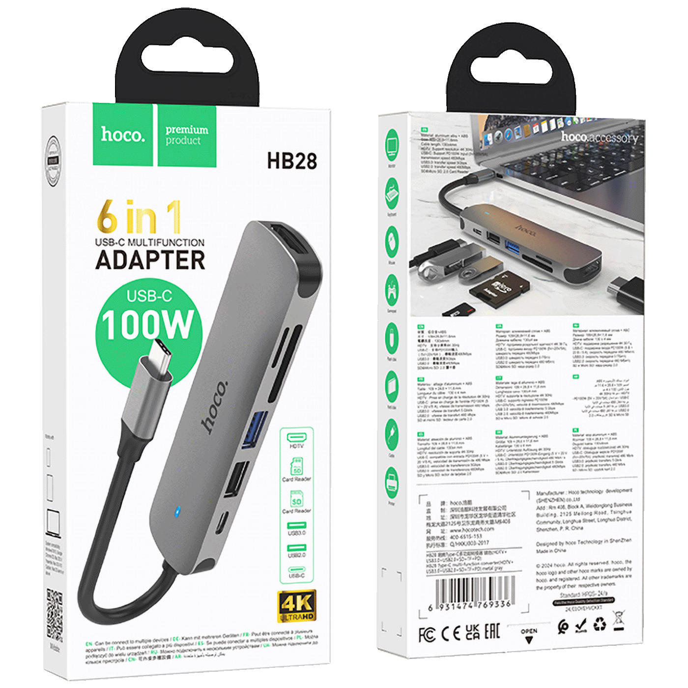 hoco. Konverter USB HUB type C to HDTV, USB3.0/USB2.0/PD/HDMI - HB28