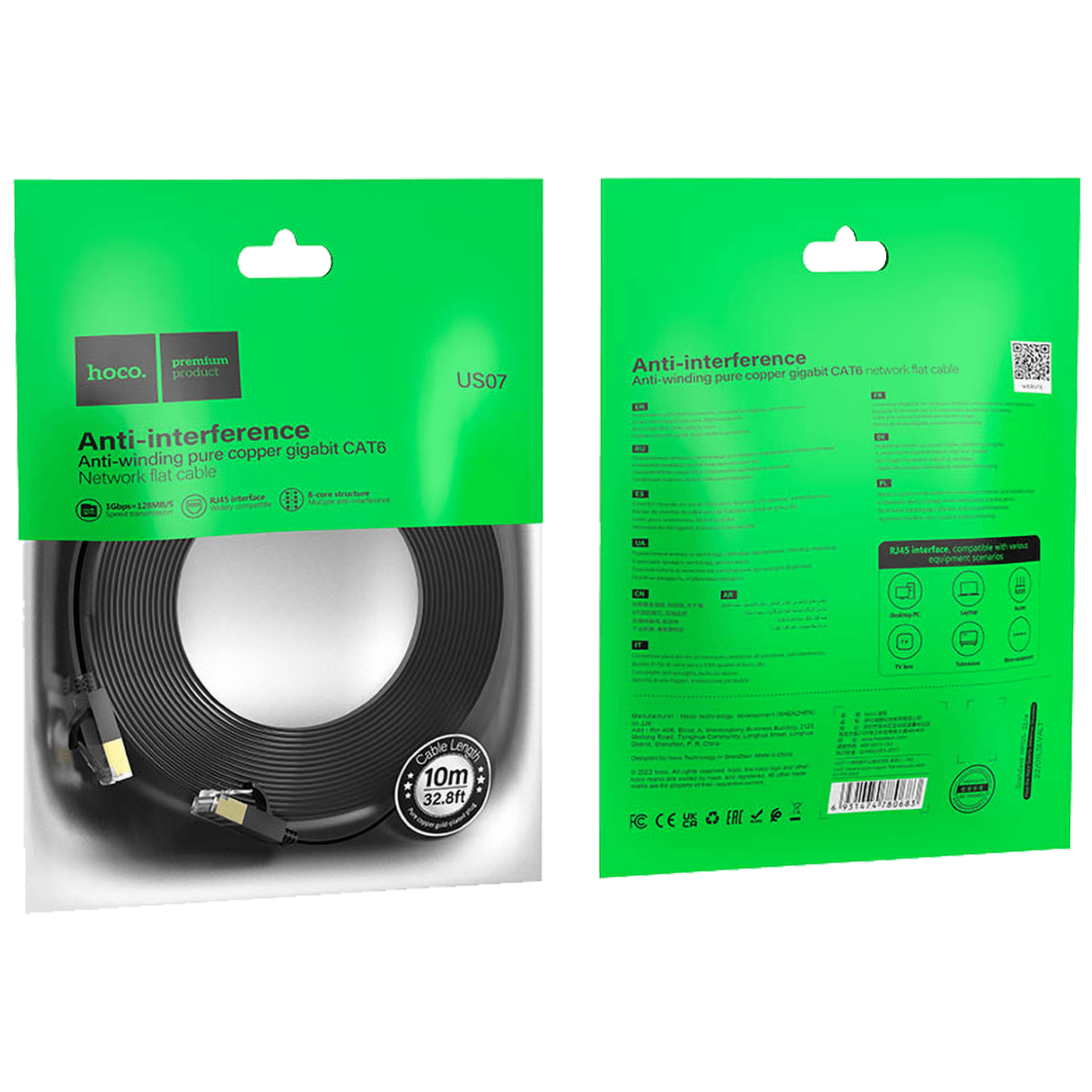 hoco. Mrežni kabl, CAT6, Gigabit Ethernet, flat, 10 met., crna - US07 General, 10 met.