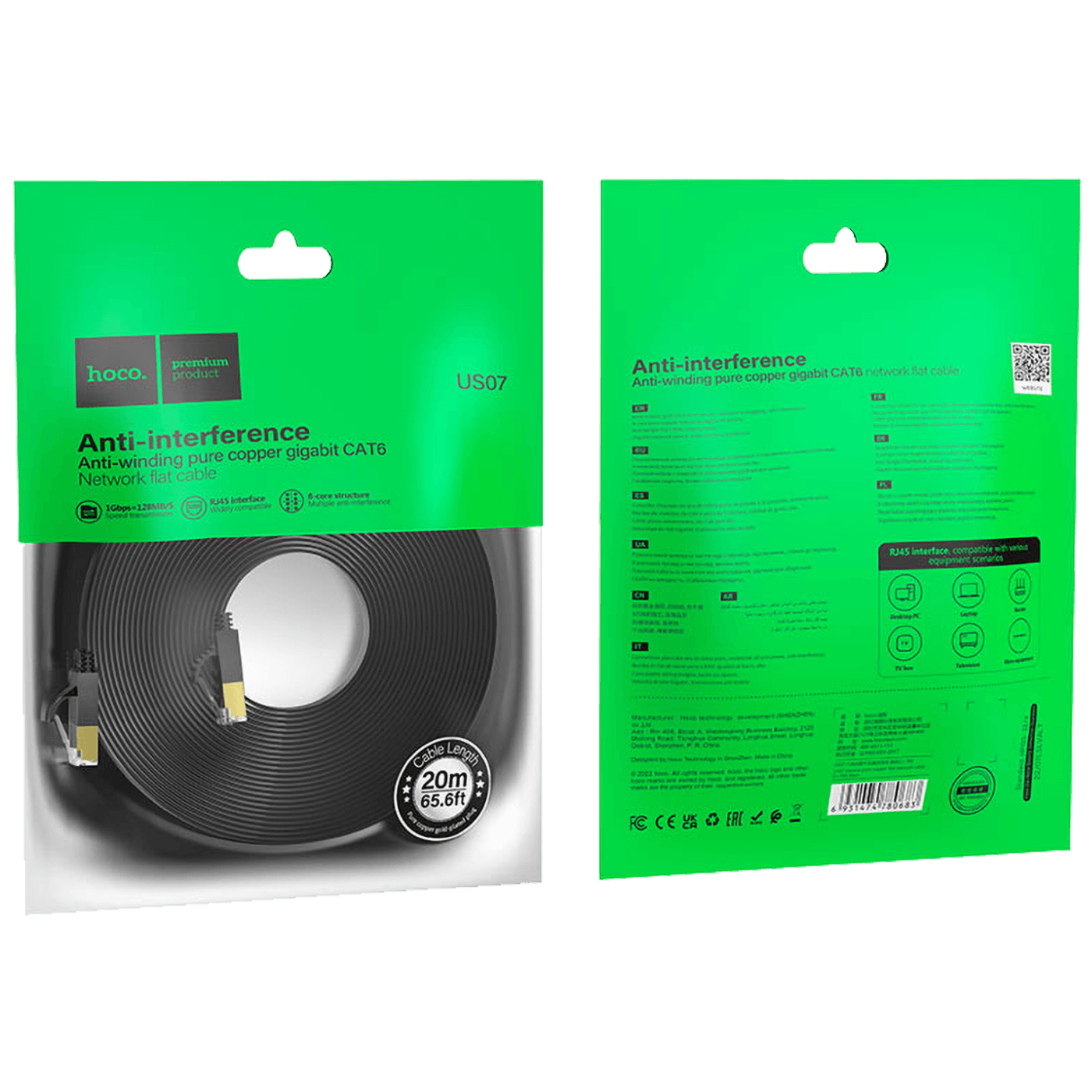 hoco. Mrežni kabl, CAT6, Gigabit Ethernet, flat, 20 met., crna - US07 General, 20 met.
