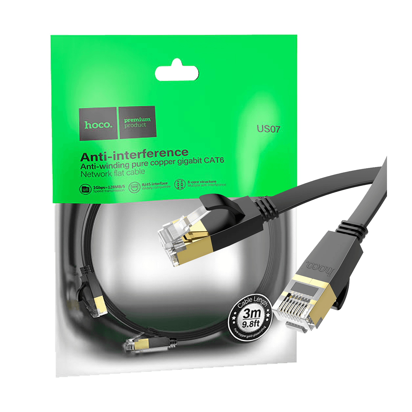 hoco. Mrežni kabl, CAT6, Gigabit Ethernet, flat, 3 met., crna - US07 General, 3 met.