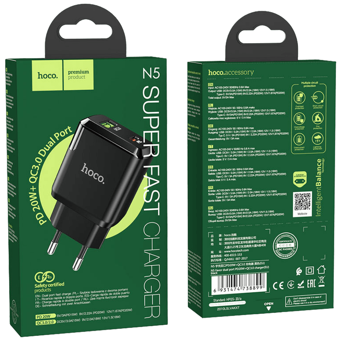 hoco. Punjač kućni, brzi, PD 20W, QC3.0 18W - N5 Favor Black