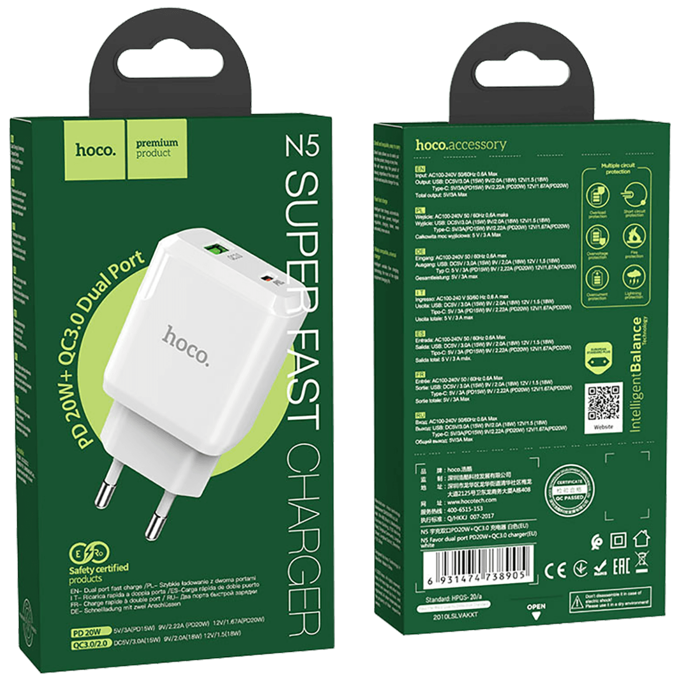 hoco. Punjač kućni, brzi, PD 20W, QC3.0 18W - N5 Favor White