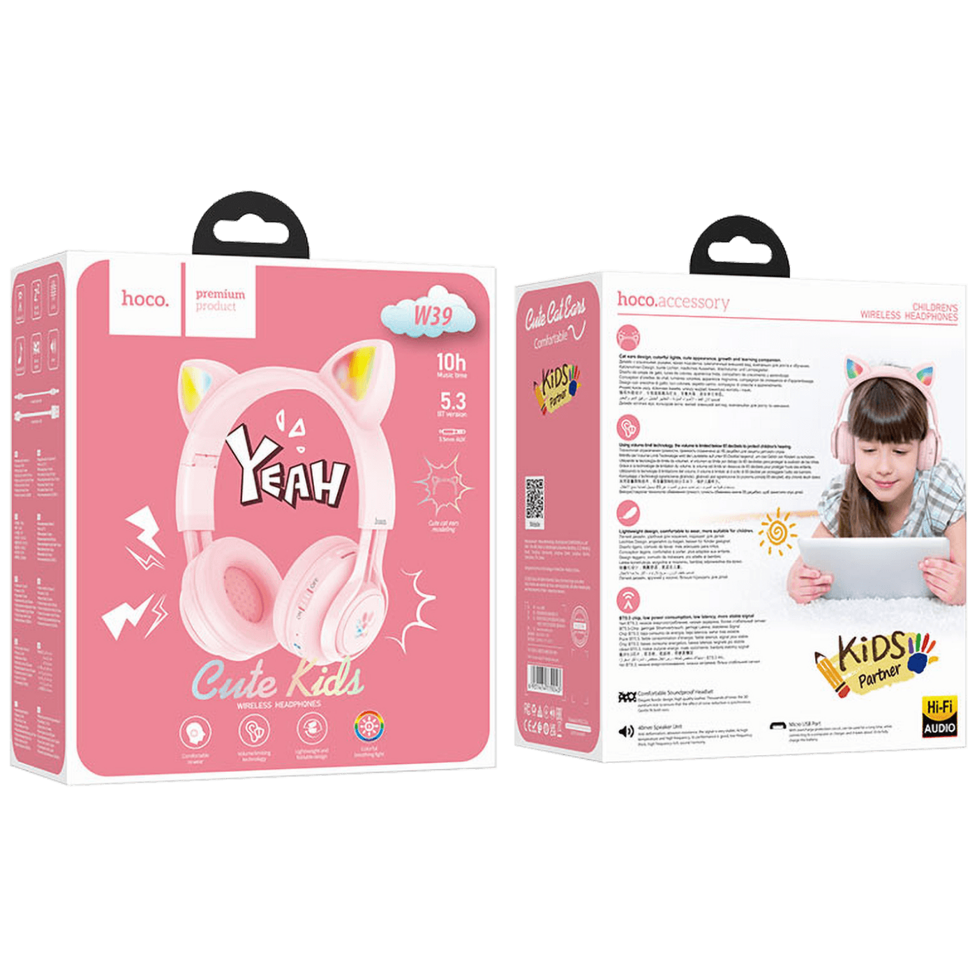 W39 Cat ear bežične slušalice za djecu, BT v5.3, 400mAh baterija za 12 sati korištenja, 120 sati pripravnosti, ograničenje zvuka 85dB, podržava Bluetooth, AUX i druge načine rada