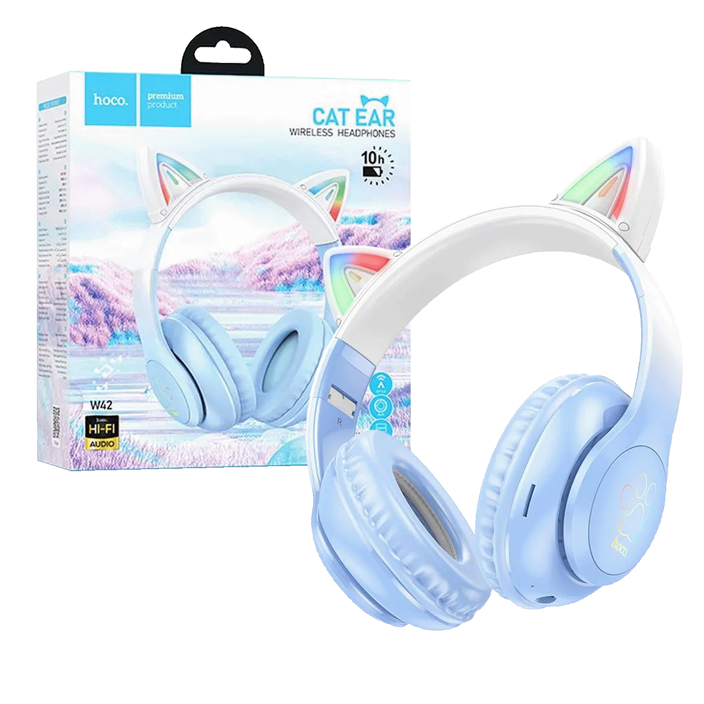 Hoco W42 bežične slušalice s mačjim ušima. Omogućuju visokokvalitetnu reprodukciju zvuka i učinkovito upravljanje pozivima. Savršen poklon za djecu.