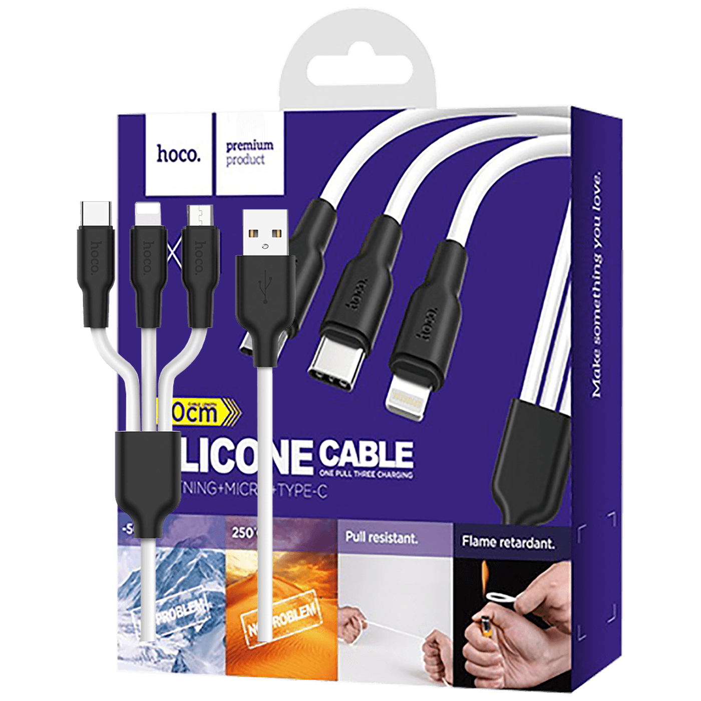 hoco. USB kabl, 3in1, microUSB, type C, Lightning, 1.2 met., 2 A - X21 Silicone 3in1, Black/White