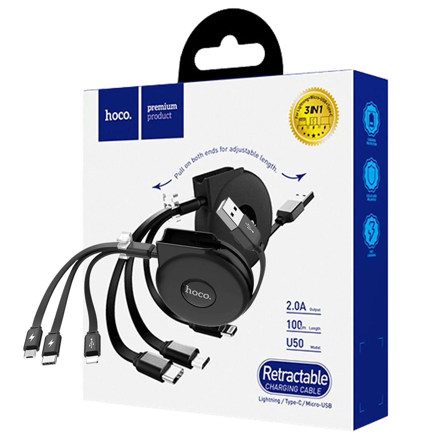hoco. USB kabl za punjenje, 3in1, na izvlačenje, 1 met., 2 A - U50
