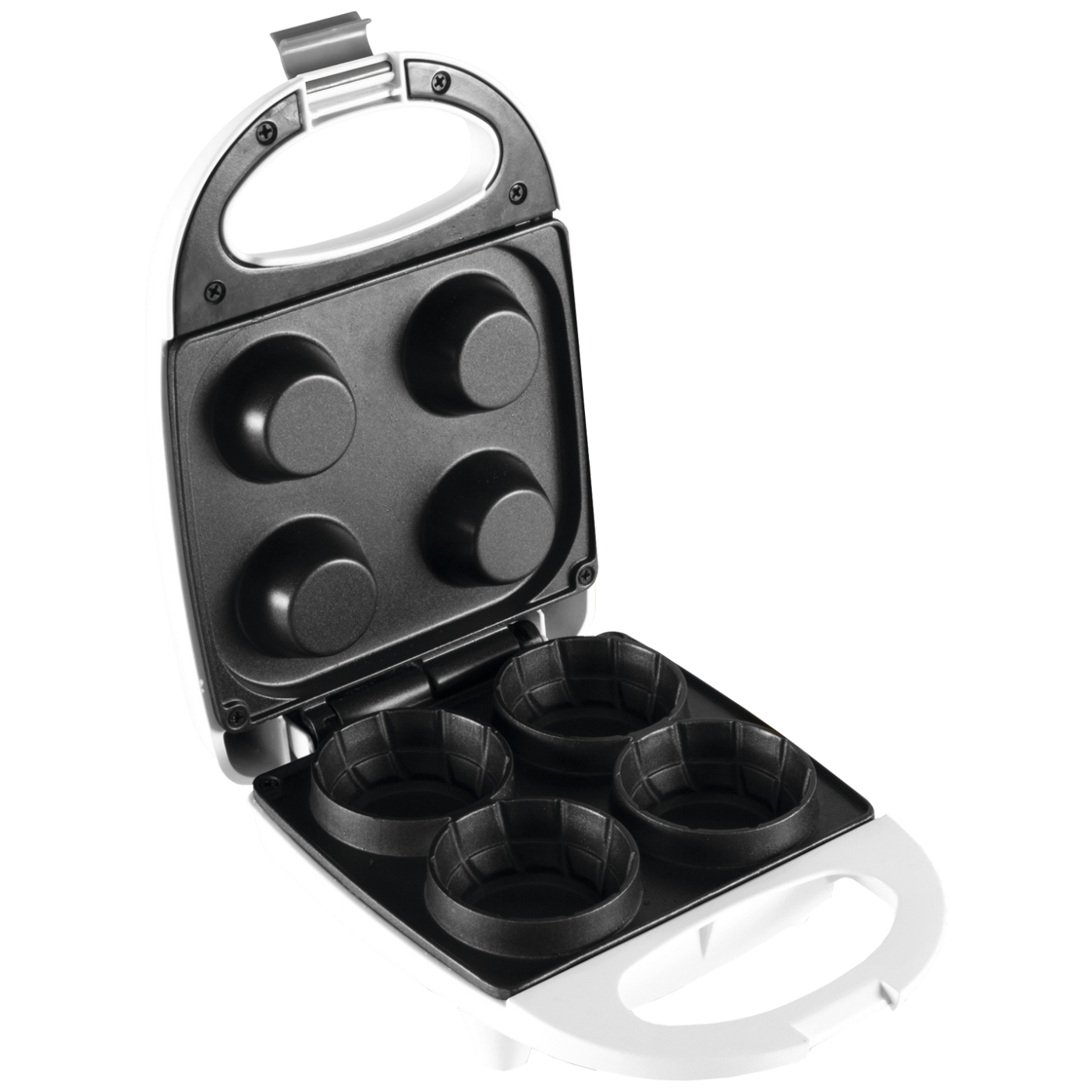 Aparat za izradu vafli, snaga grijača 520W, izrada 4 čašice istovremeno, podloga sa slojem protiv ljepljenja namirnica, toplinski izolirane drške, sistem za zaključavanje, signalna lampica, zaštita protiv pregrijavanja, dužina napojnog kabla 70cm