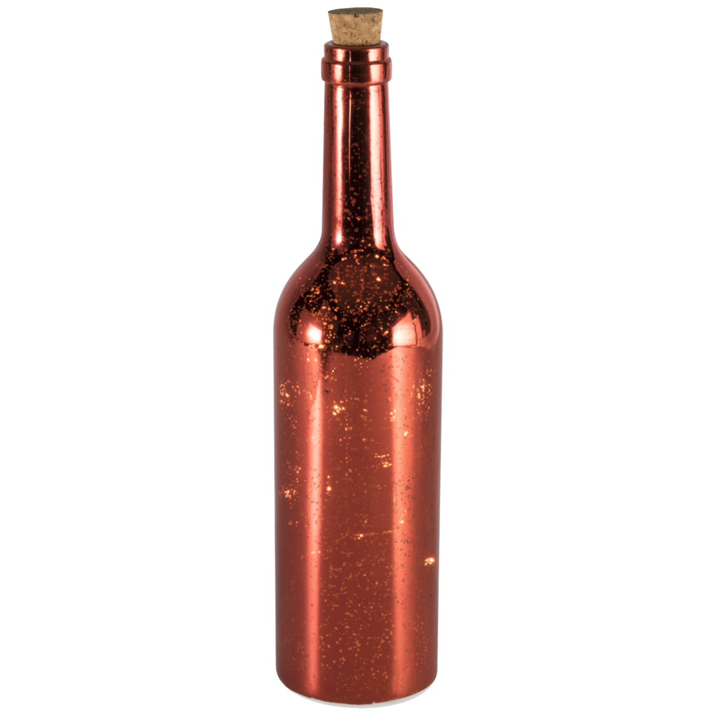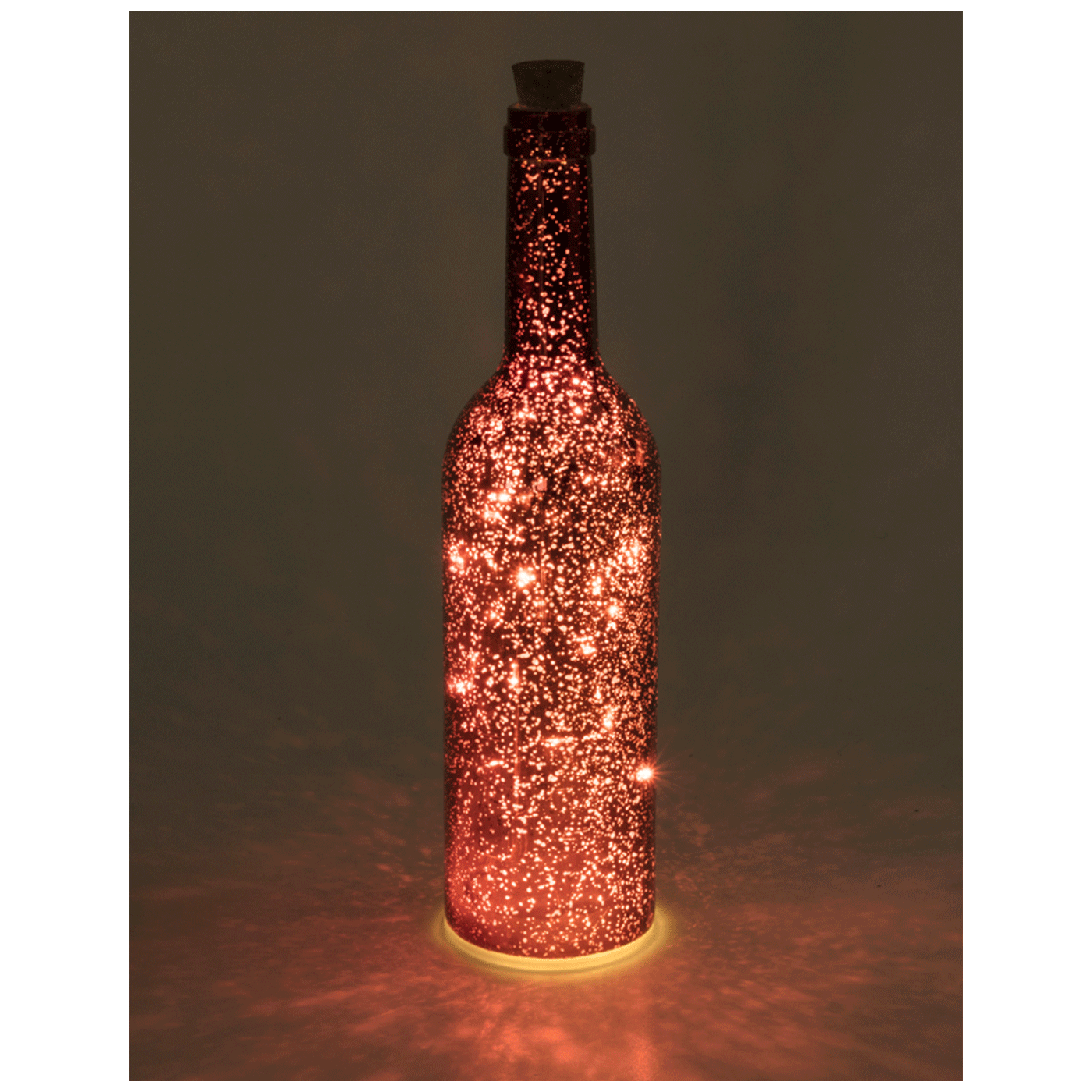 Dekorativna staklena boca, boca crvene boje, unutarnja LED svjetlost, 8 lampica, boja svjetlosti žuta, veličina Ø 7.5 x 30cm, napajanje 3 x 1,5V AAA baterije