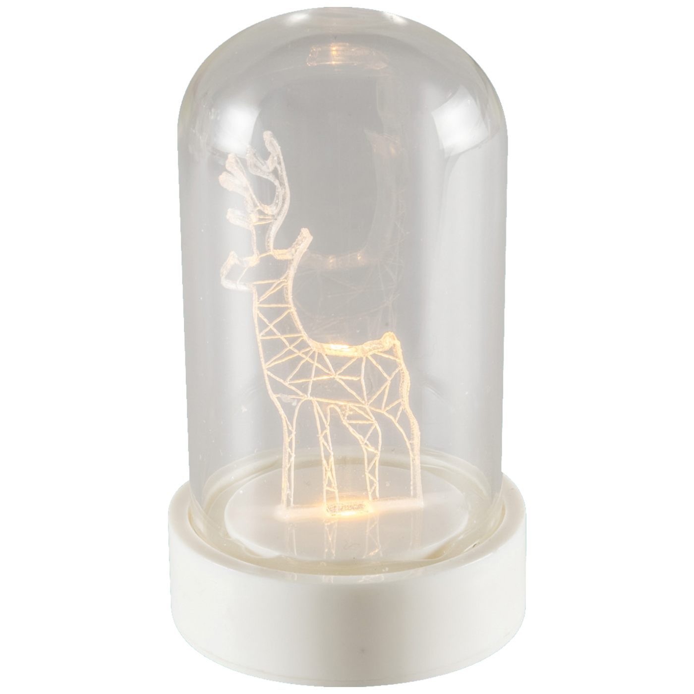 CDM 9/M, stolna dekoracija, jelen, izvor svjetlosti LED, toplo bijela svjetlost, plastično postolje, stakleni poklopac, dimenzije Ø5.5 x 9 cm, prekidač ON / OFF, napajanje baterija CR2032, za unutarnju uporabu