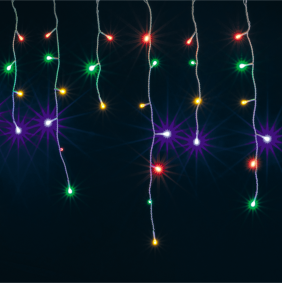 Dekorativna LED rasvjeta, za vanjsku i unutarnju upotrebu, 200 LED dioda, bijeli kabel dužine 10 met, boja svjetlosti kolor (plava, crvena, žuta), 8 programa rada, dužina napojnog kabla 5met, IP44,