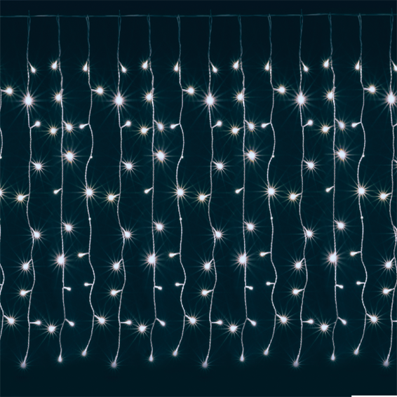 Dekorativna LED rasvjeta, za unutarnju upotrebu, ukupno 126 LED dioda, 9 žica po 14 dioda, boja svjetlosti bijela, napajanje DC adapter