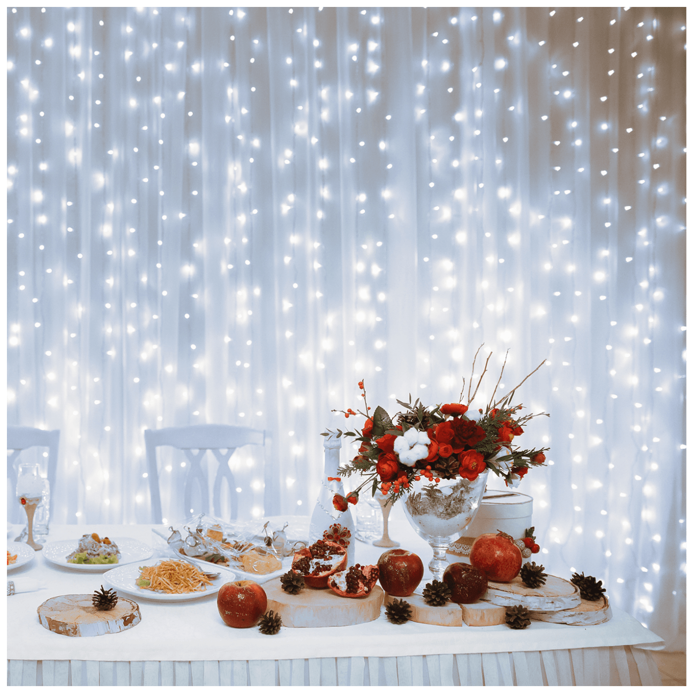 Dekorativna LED rasvjeta, LED svjetlosna zavjesa, za unutarnju i vanjsku upotrebu, 210 hladno bijelih LED dioda, 21 niz, 10 LED dioda po nizu, bijela žica