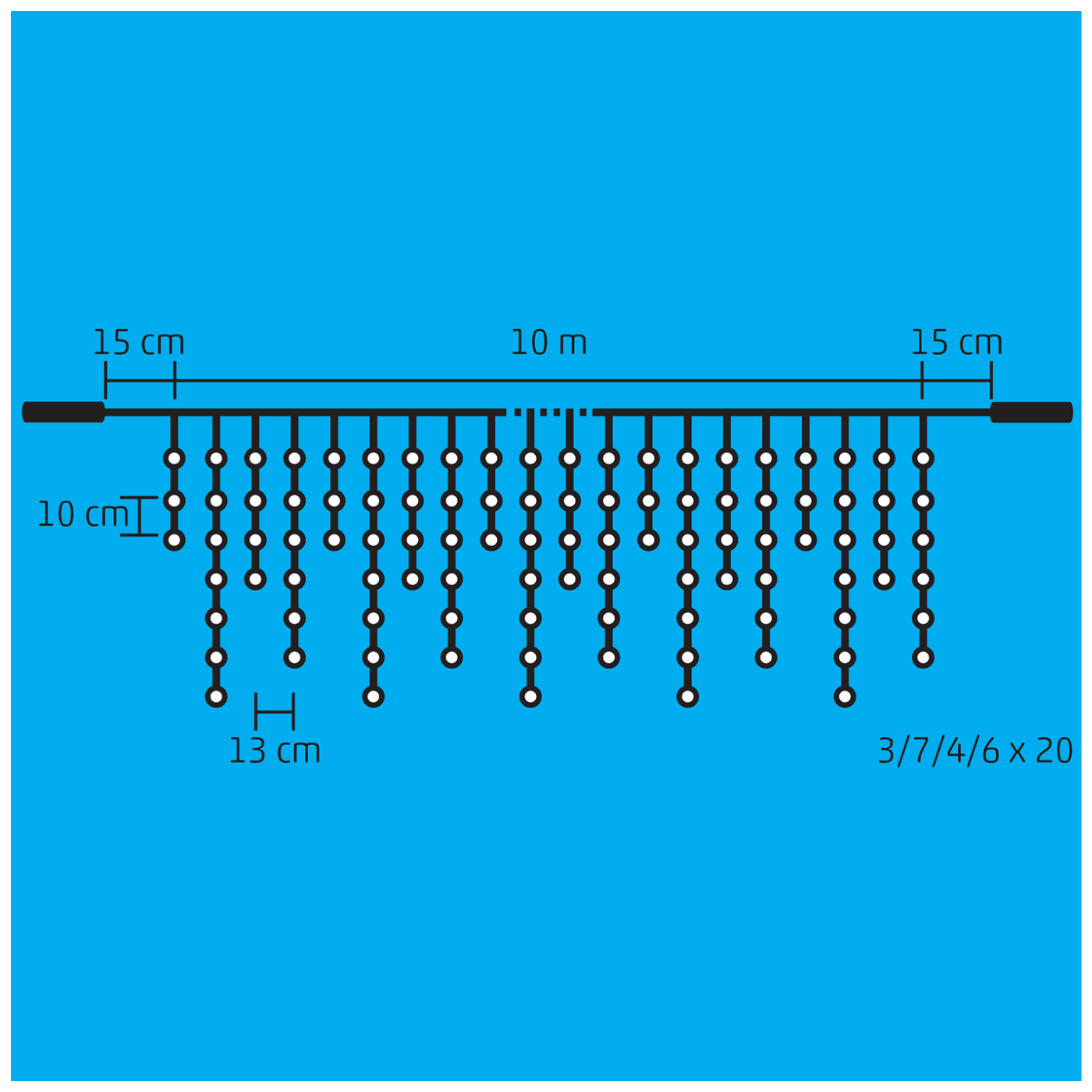 Posebna značajka niza svjetala je da hladno bijela LED dioda treperi u svakom drugom nizu između toplo bijelih LED dioda s konstantnim svjetlom. Ovim sjajem stvaramo još spektakularniji bajkoviti sjaj za svečana događanja ove zime.