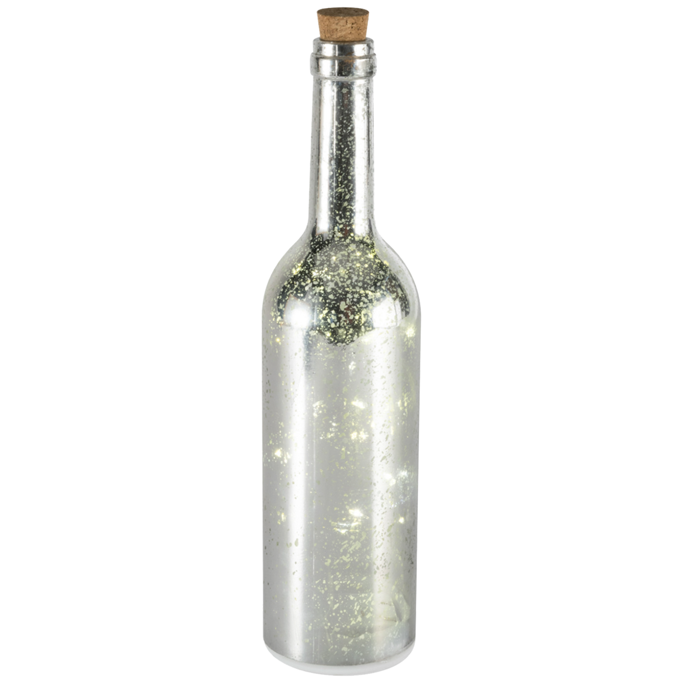 Dekorativna staklena boca, boca srebrne boje, unutarnja LED svjetlost, 8 lampica, boja svjetlosti žuta, veličina Ø 7.5 x 30cm, napajanje 3 x 1,5V AAA baterije