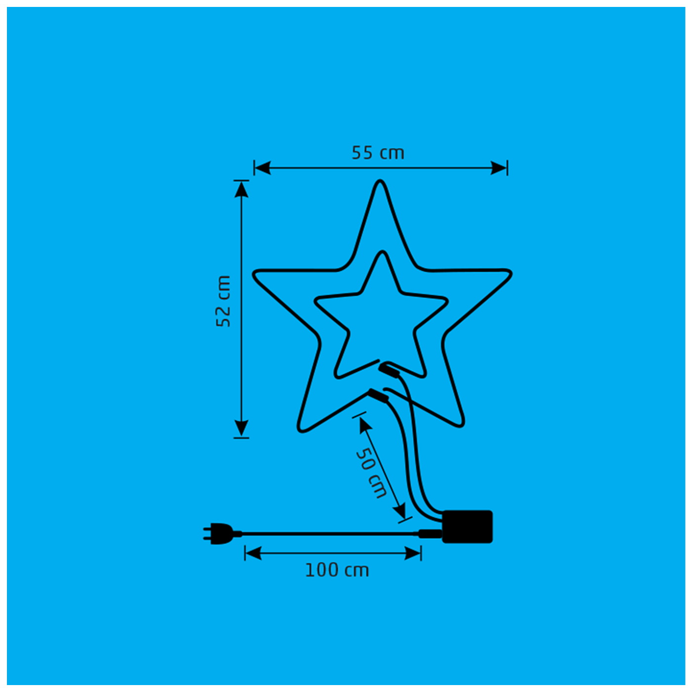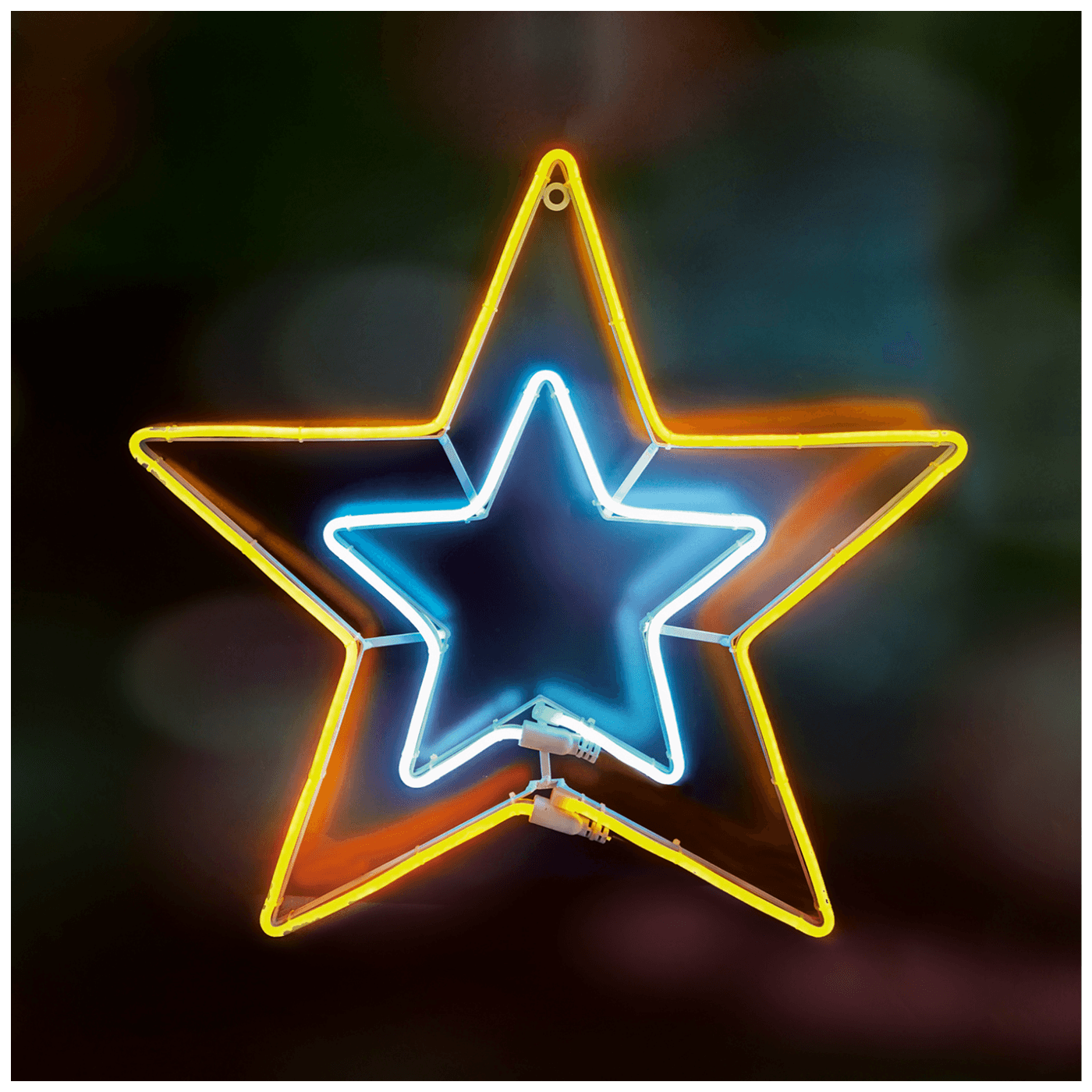 Dekorativna rasvjeta, LED neonska figura, zvijezda, za unutarnju i vanjsku upotrebu, ledeno plavo i toplo žuto neonsko svjetlo, svijetli s obje strane figure, funkcija treptanja
