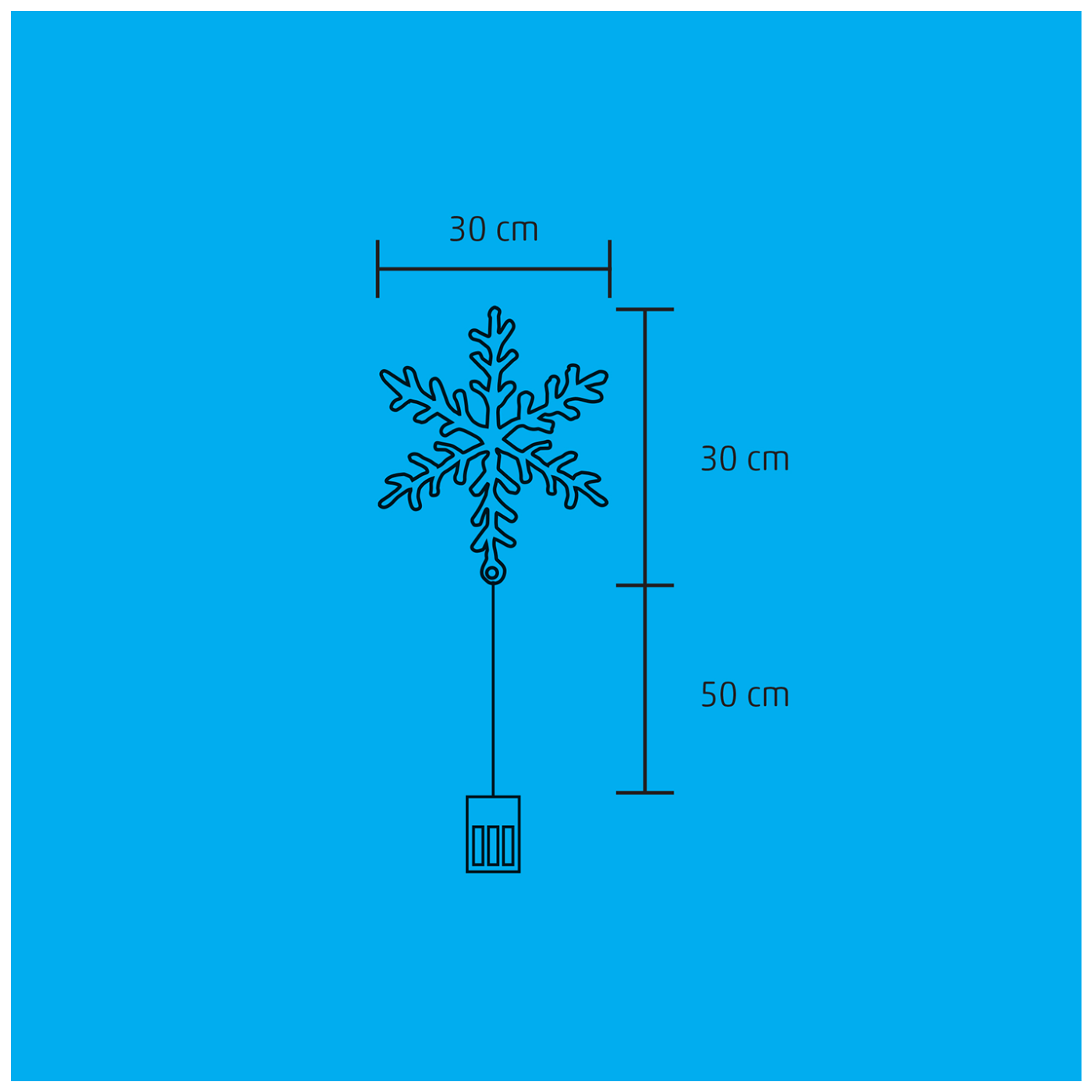 Dekorativna rasveta, za unutarnju uporabu, izvor svjetlosti 16 kom. toplo bijelih LED, akrilni ukras za prozor pahuljica, napajanje 3 x AA baterije ( nisu uključene u pakiranje ), dimenzije 30 x 30 cm