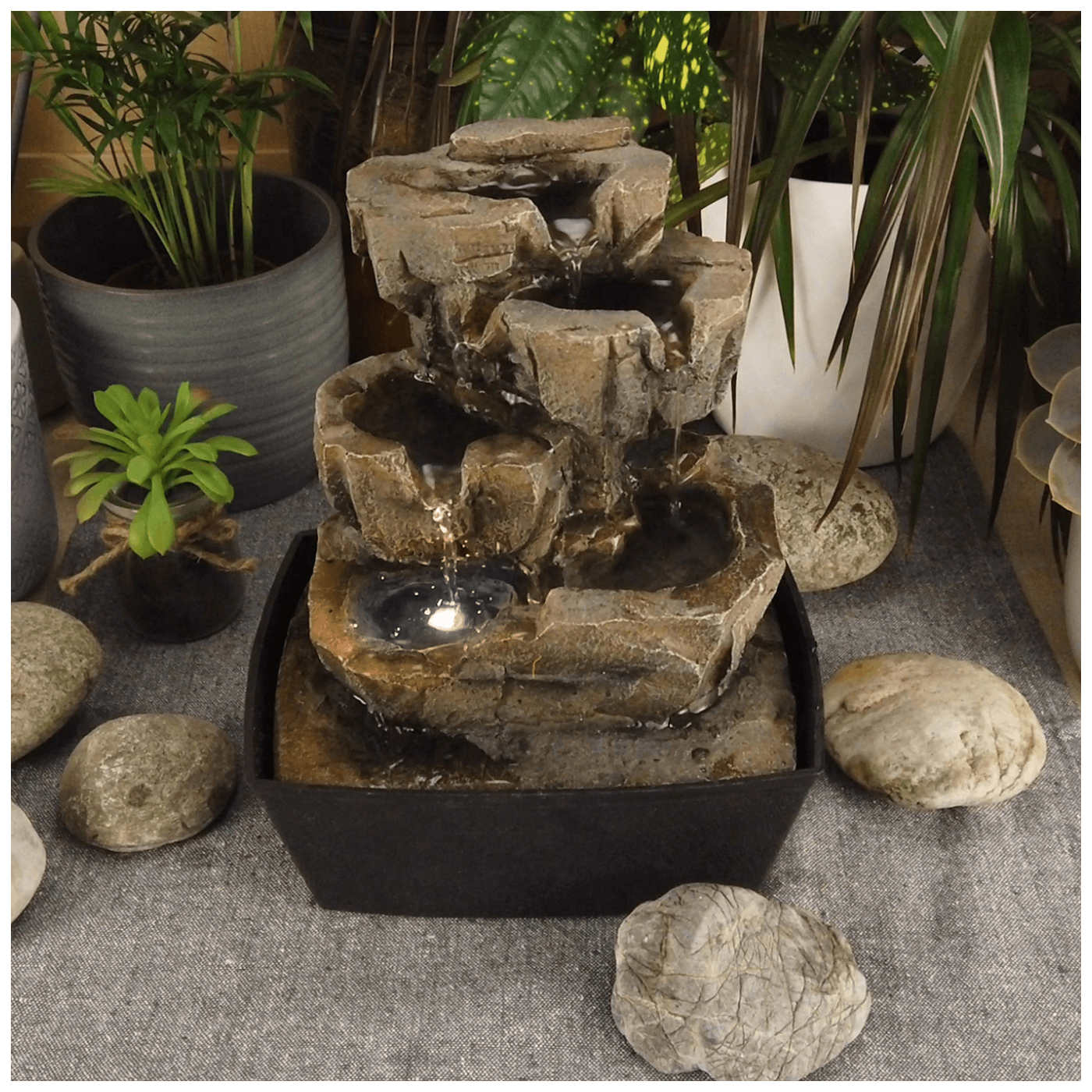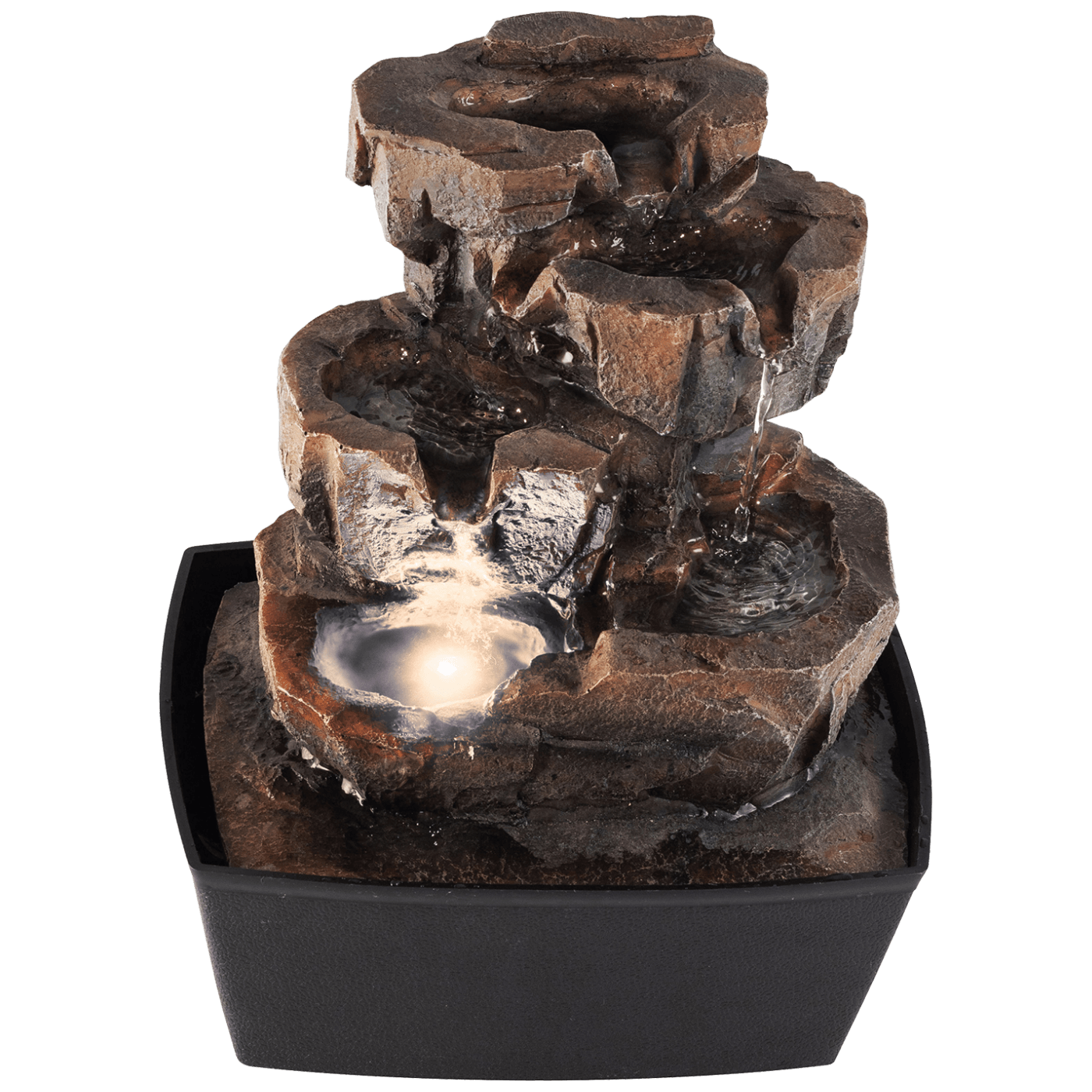 Mini dekorativna fontana sa ugrađenim LED svjetlom, za unutarnju uporabu, toplo bijela LED svjetlost, napajanje AC adpter, dimenzije 20 x 25 x 15.5 cm