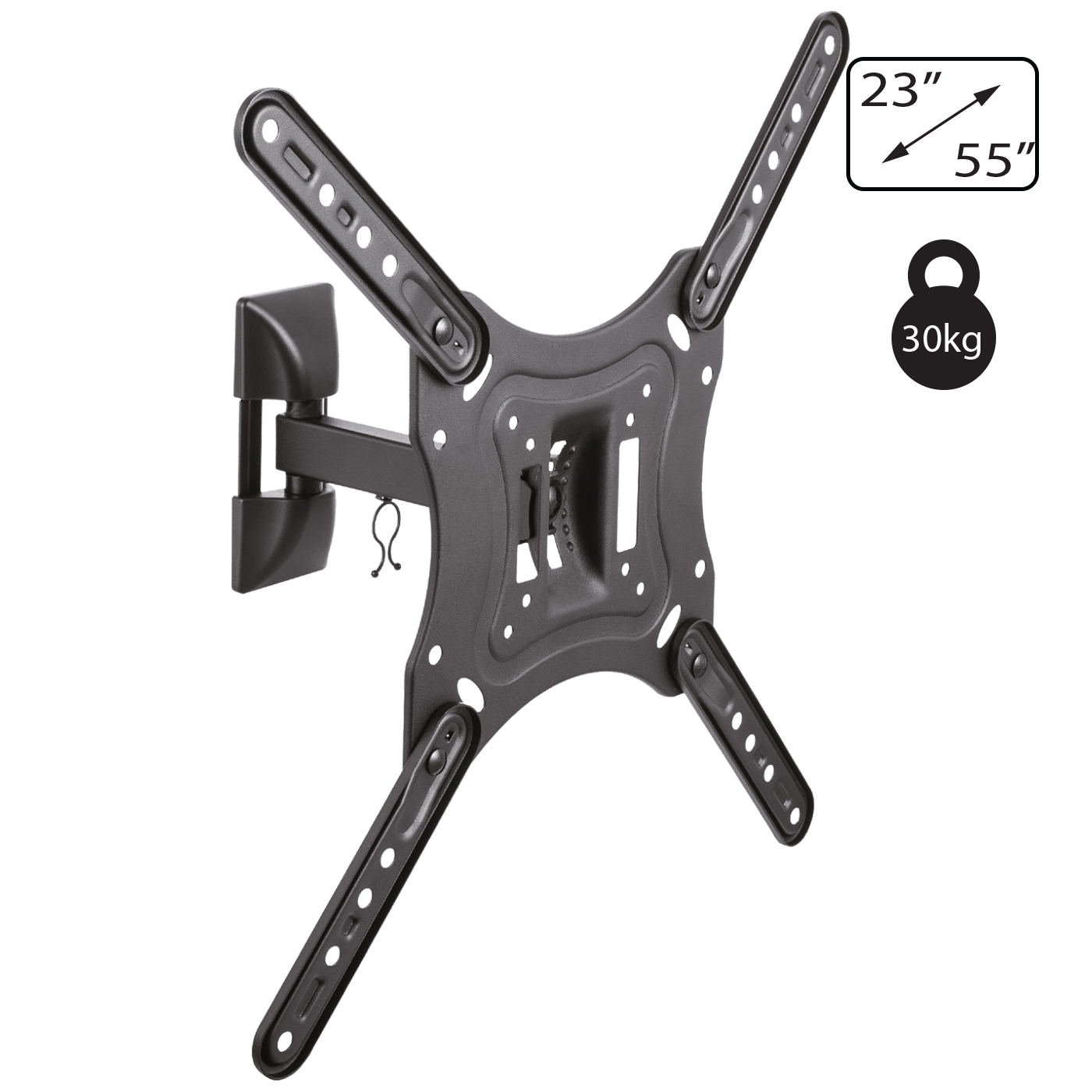 Zidni nosač za TV prijemnike 23" - 55", maximalno opterećenje 30 kg, udaljenost od zida 8.8 do 20.1 cm, VESA 75x75, 100x100, 200x100, 200x200, 300x300, 400x200, 400x400 mm, jednostavna montaža, fiksno pozicioniranje.